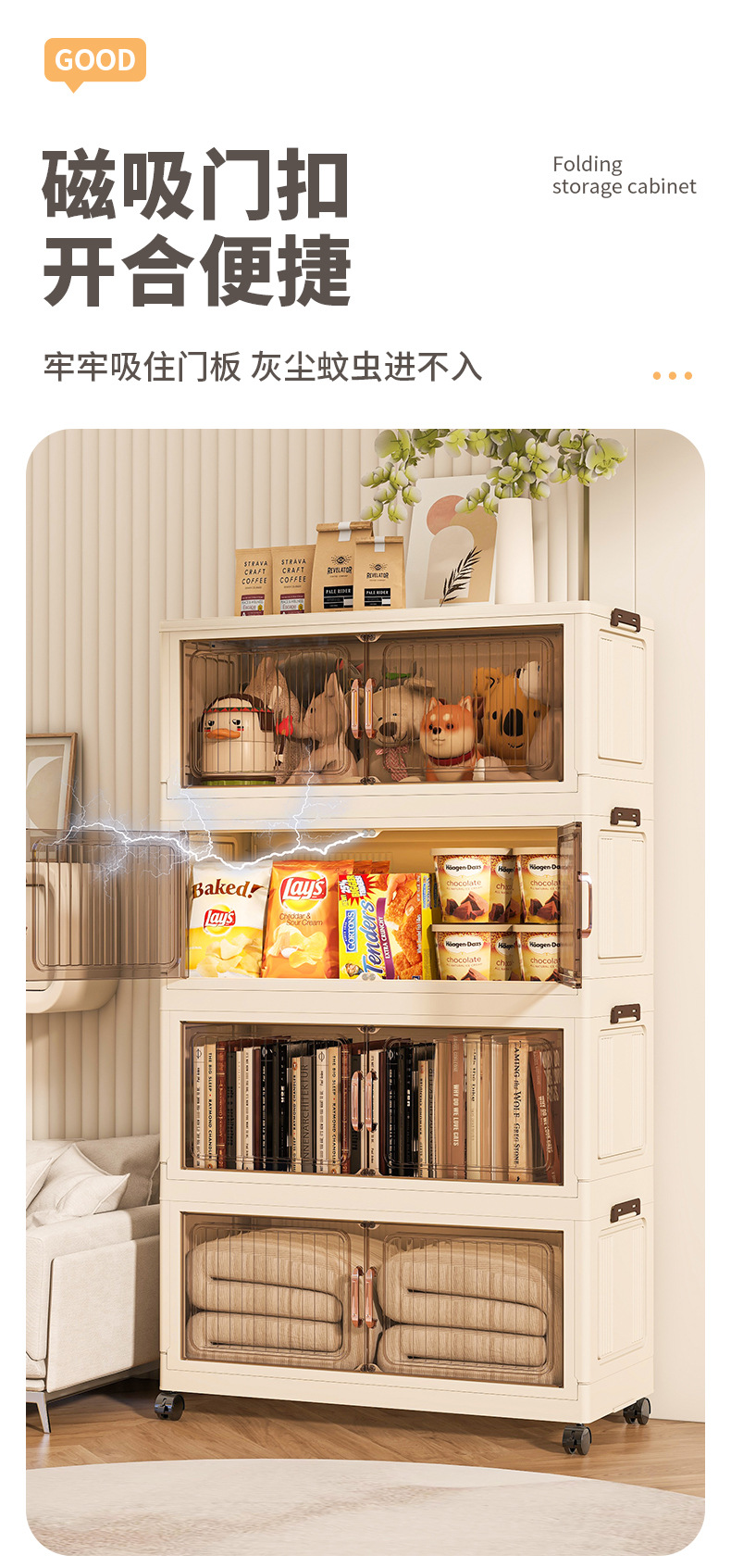 Складная коробка для хранения без установки Простая коробка для хранения игрушек Шкаф для закусок Кухонный пластиковый шкаф для хранения