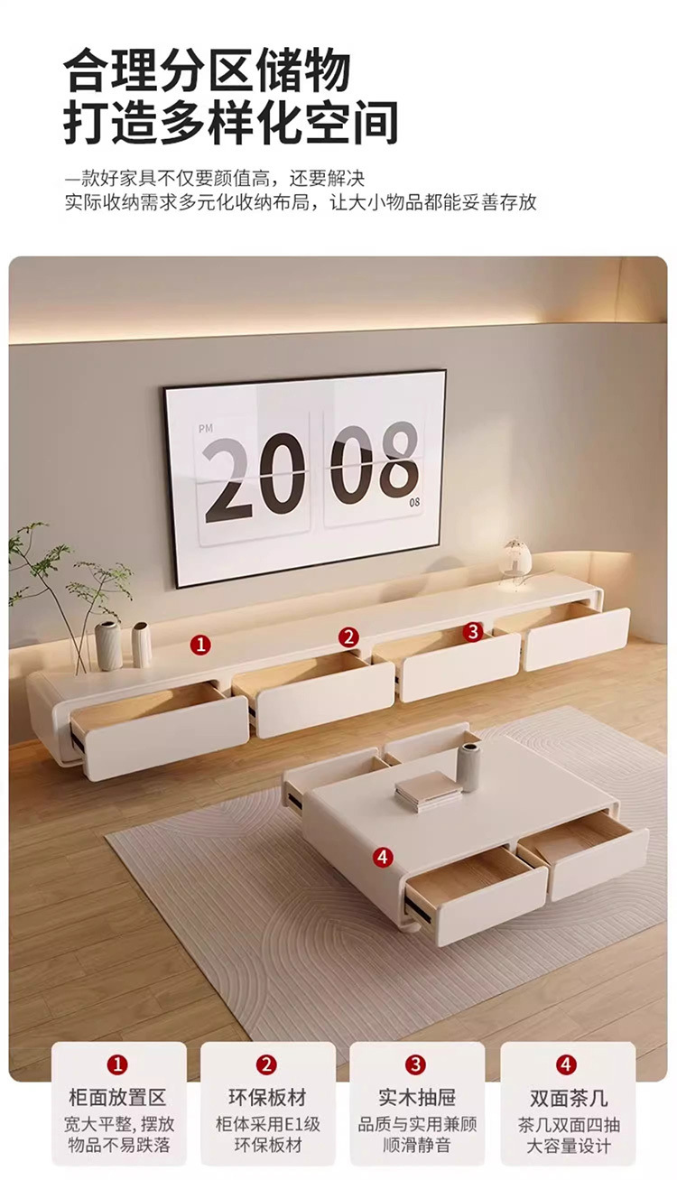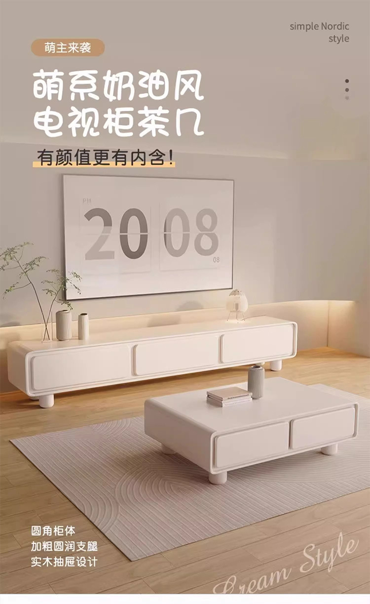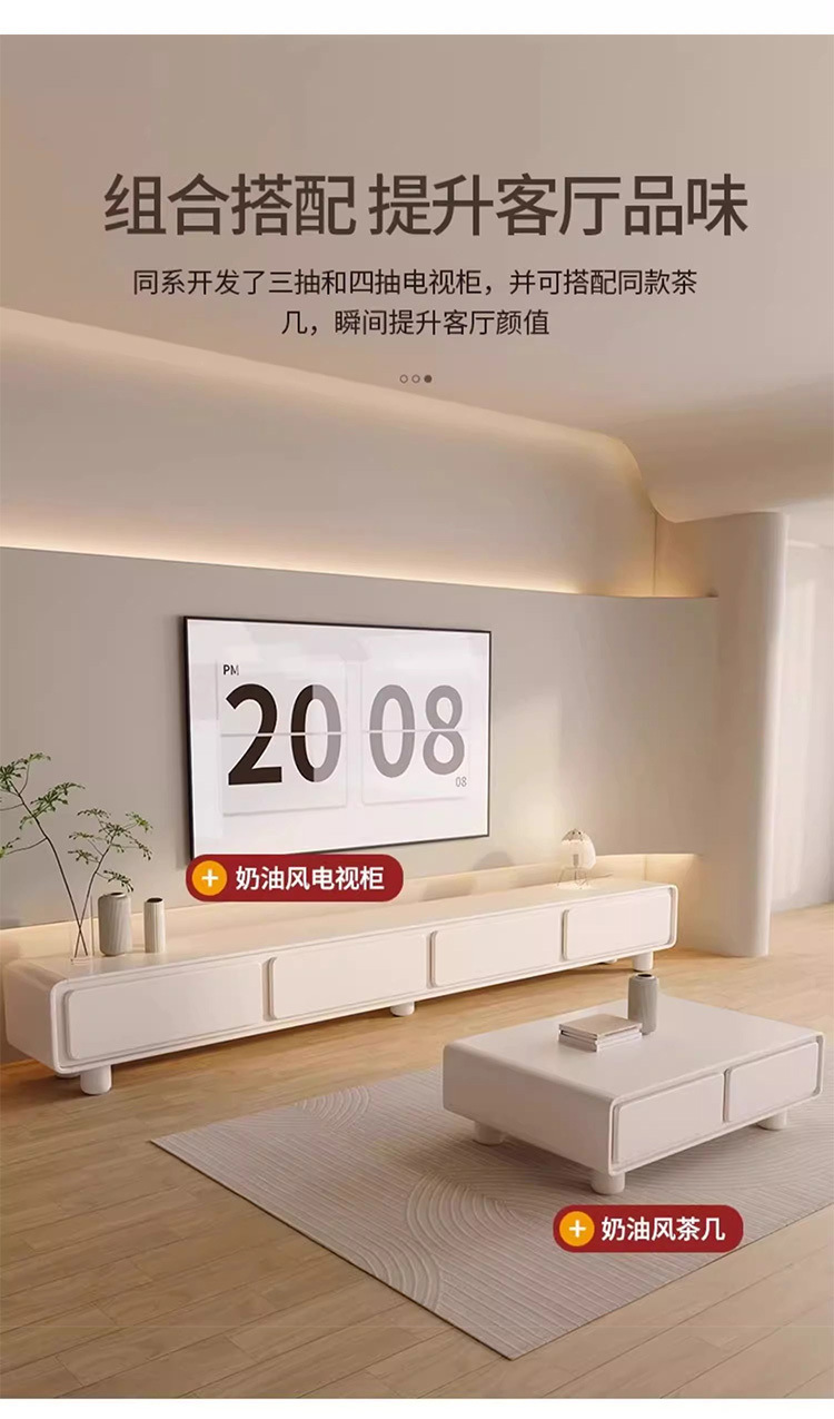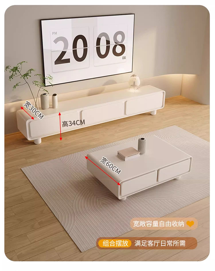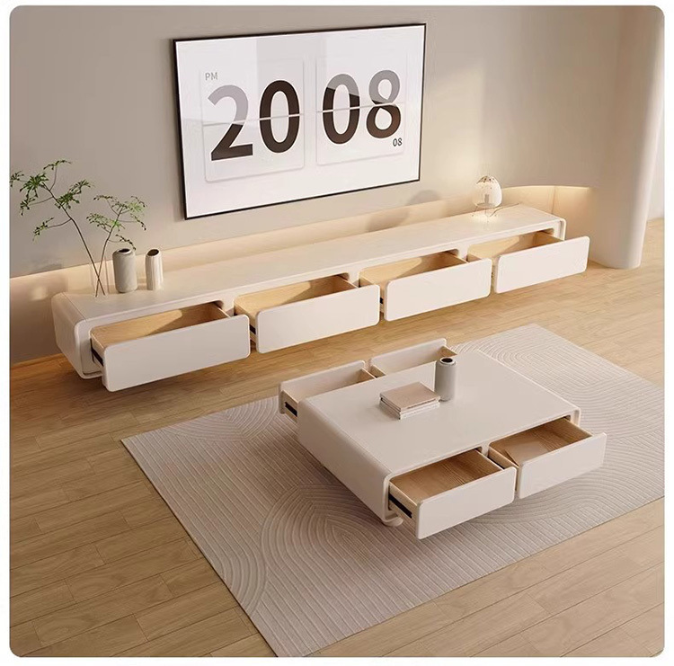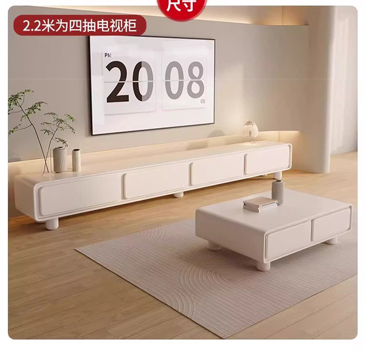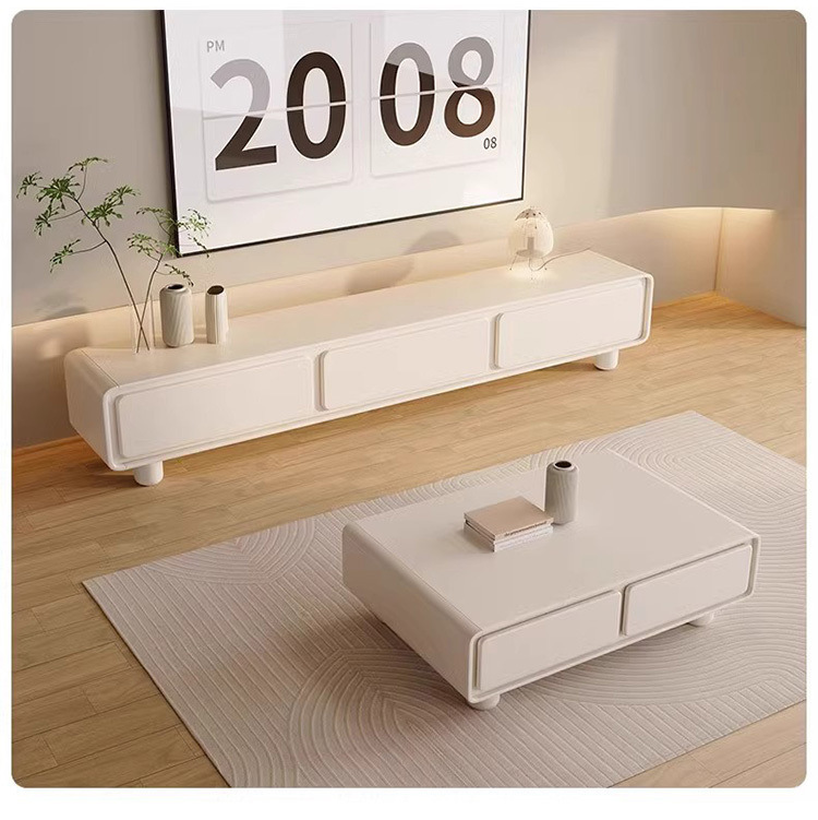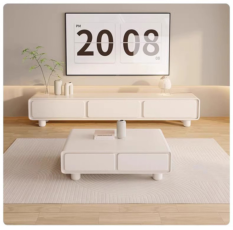 Закругленный французский кремовый ТВ-кабинет простой современный кофейный столик комбинация для малогабаритной квартиры