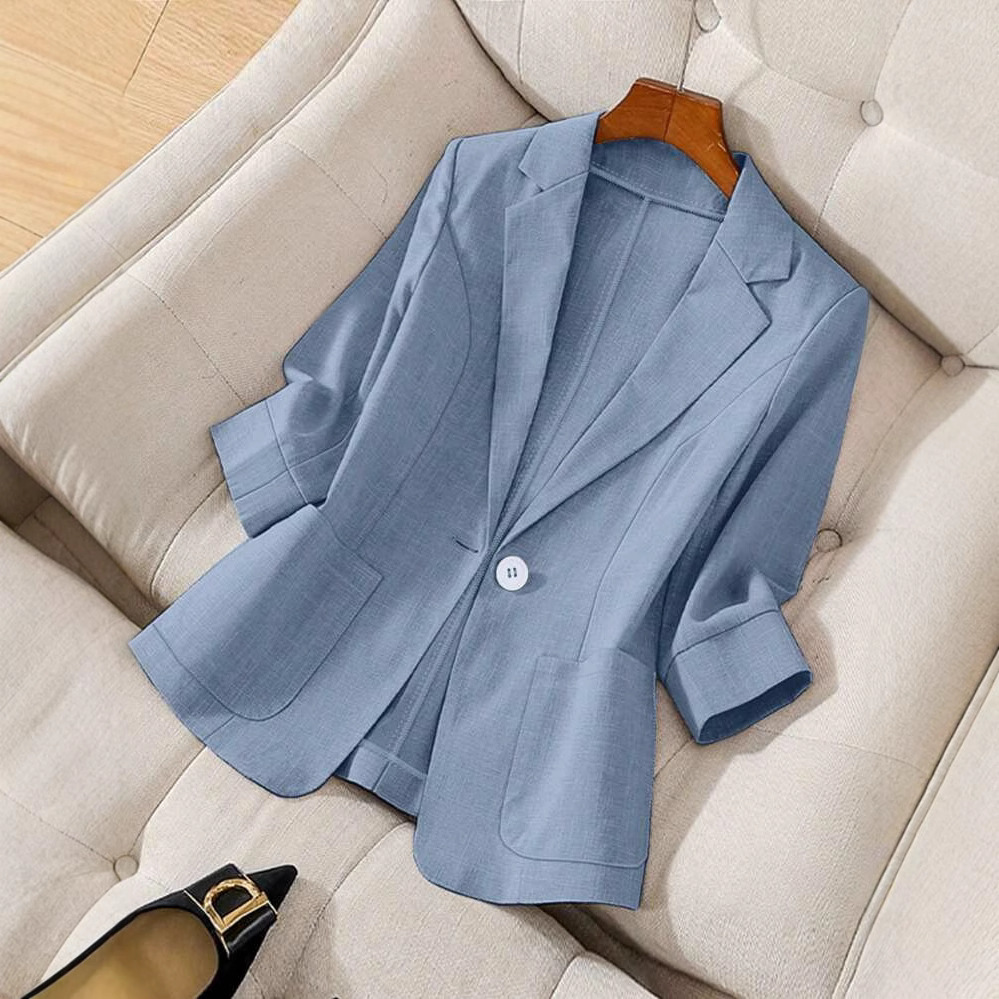 Синий жакет с воротником и тремя четвертями рукавами для женщин, малый размер, полусезонный, 2025, новый, профессиональный, повседневный, элегантный, универсальный, модный тренд