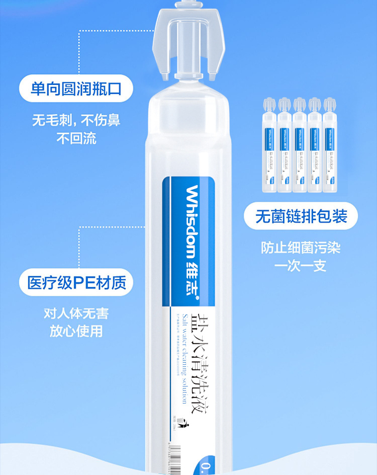 оптовая продажа 0.9% физиологического раствора медицинская маленькая трубка для лица хлорид натрия безокислительный ополаскиватель рта назальный ополаскиватель против аллергии