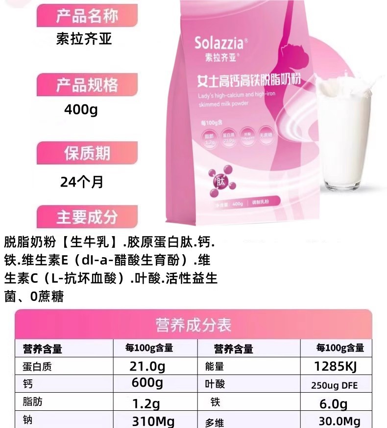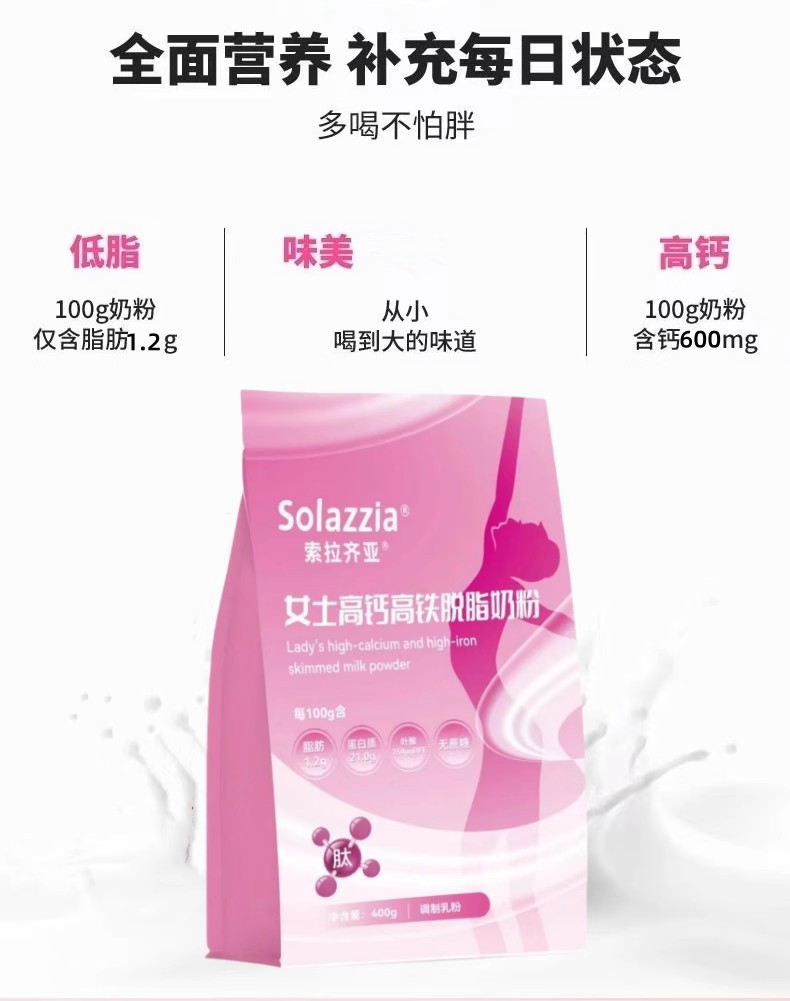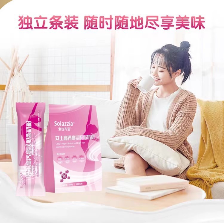Молочный порошок для женщин, с высоким содержанием железа и кальция, обезжиренный, без сахара, отдельная упаковка, 400г, для студентов и подростков