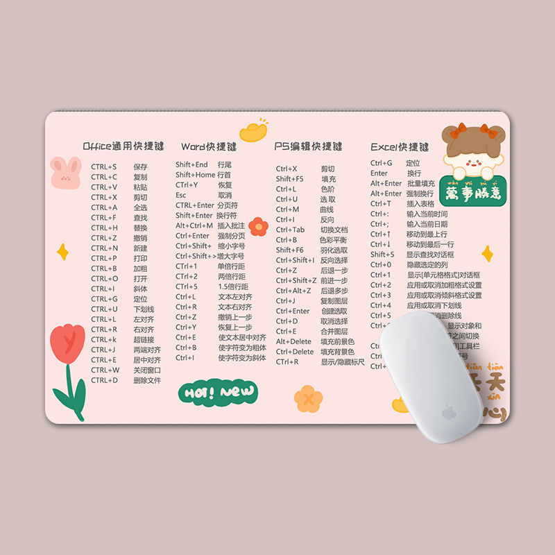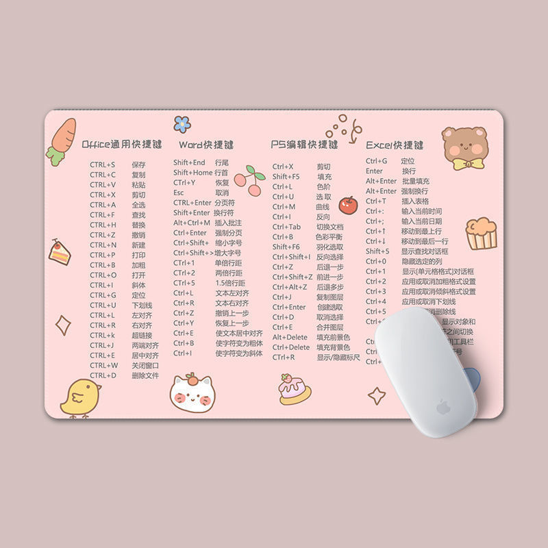Коврик для мыши с горячими клавишами, маленький офисный, розовый и фиолетовый, подушка для запястья, стильный офисный коврик для клавиатуры для мужчин и женщин