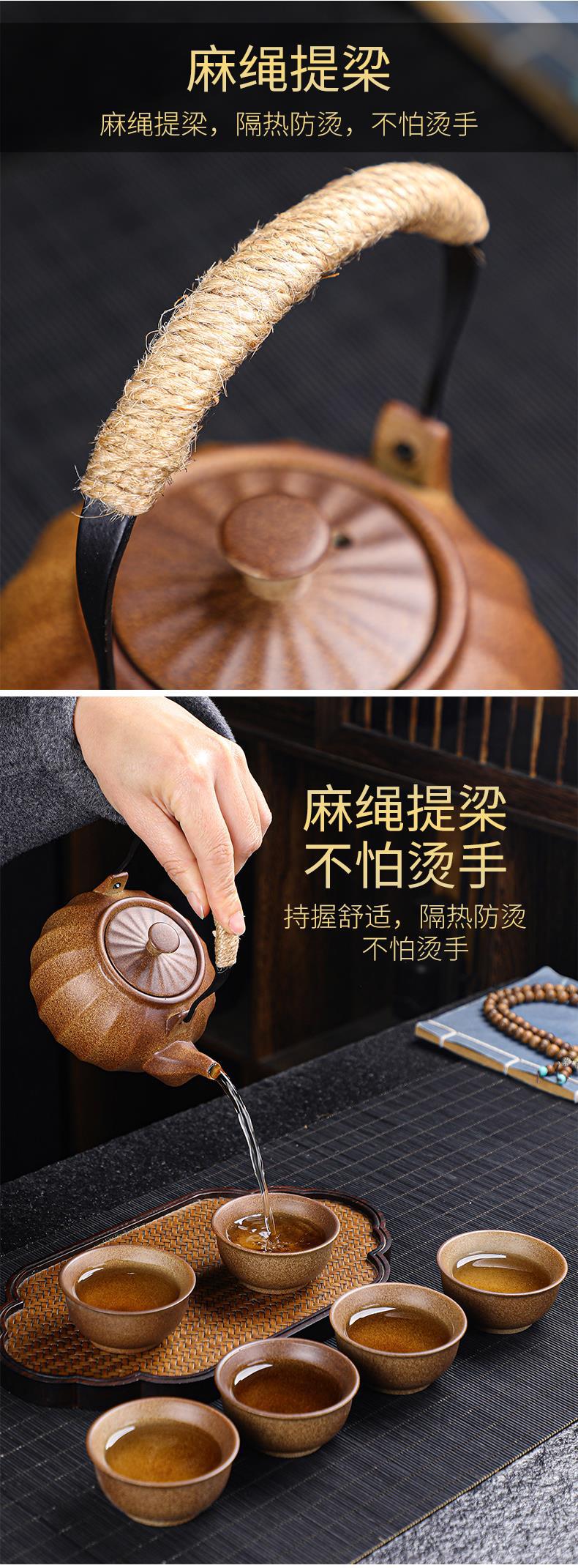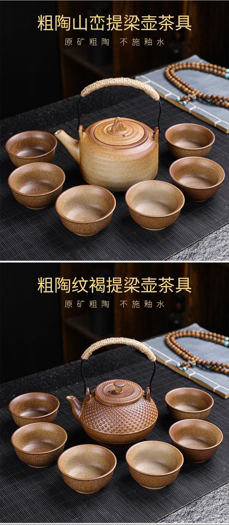 Набор чайников с ручкой, грубая керамика, полный набор кунг-фу для домашнего использования, простой угольный чайник для заваривания чая вокруг плиты