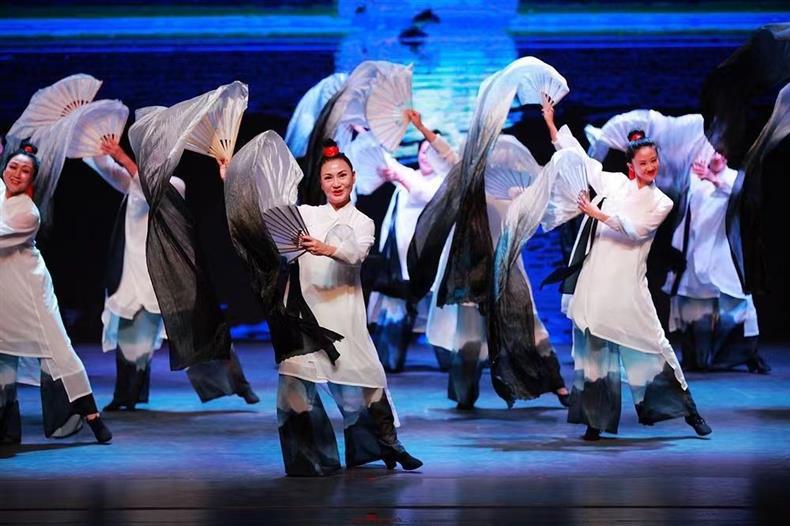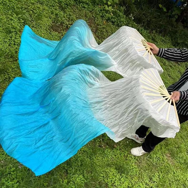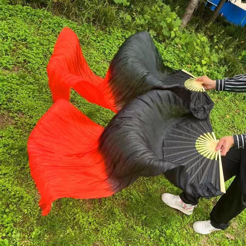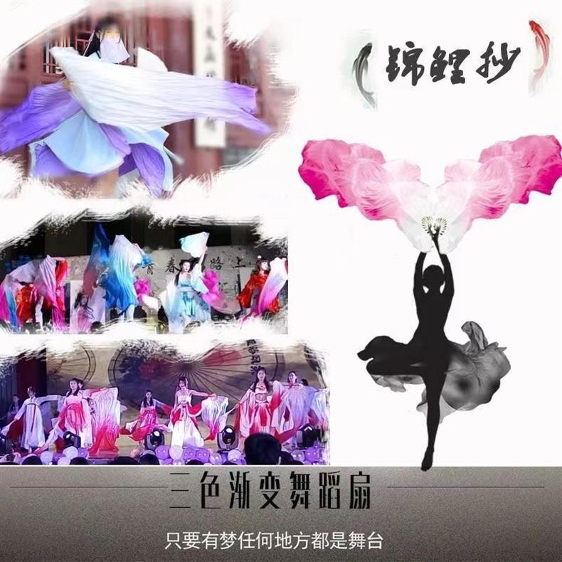 Веер Кои, длинный шелковый веер, классический танцевальный веер, черно-белый градиентный веер