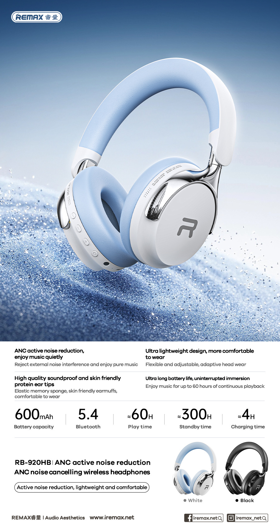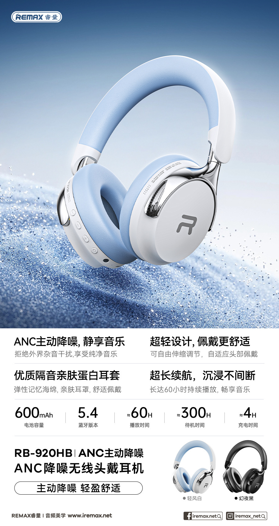 Беспроводные наушники REMAX Ruiyuan ANC с шумоподавлением, длительное время работы, музыкальные наушники RB-920HB