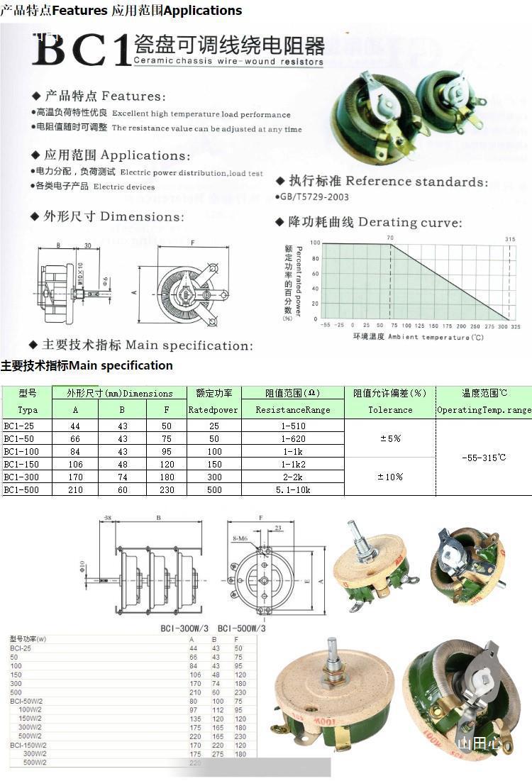 BC1 высокомощный керамический дисковый реостат 25W50W100W150W300W500W