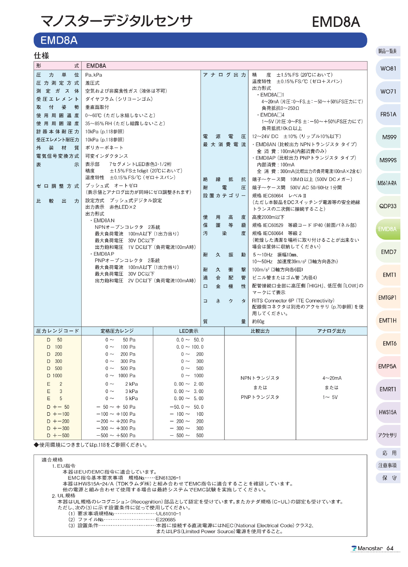 Оригинальный японский датчик Manostar Yamamoto Electric Emd8An16E2 E3 E5, импортный