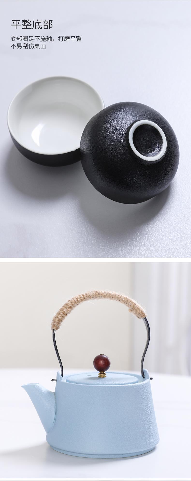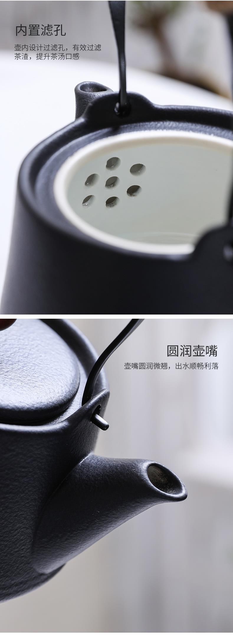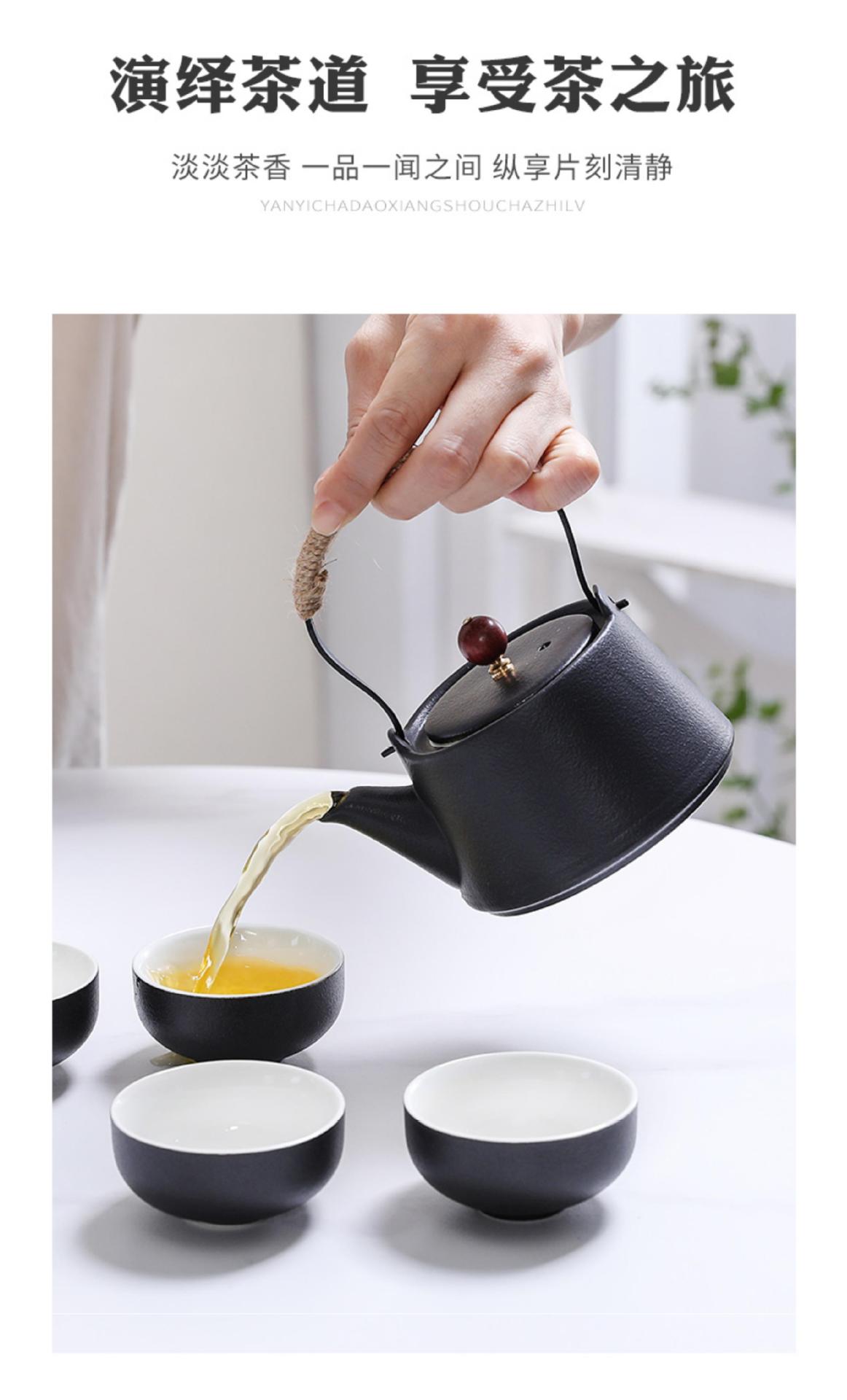 Матовый черный чайник, керамический, набор для чая, домашний, кунг-фу, китайский, ретро, один чайник и четыре чашки