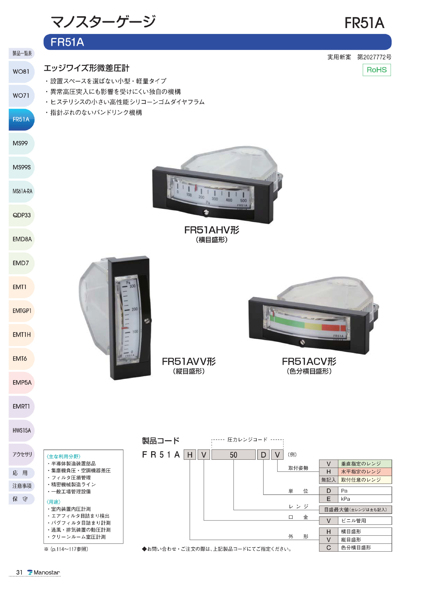 Оригинальный японский манометр Manostar Yamamoto Electric Fr51Ahv200D 300D, импортный