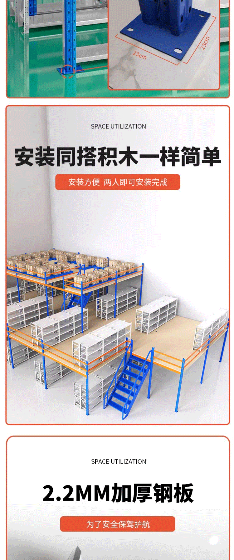 Массивная платформа для чердака, стальная конструкция, съемная, утолщенная, для двухъярусного хранения