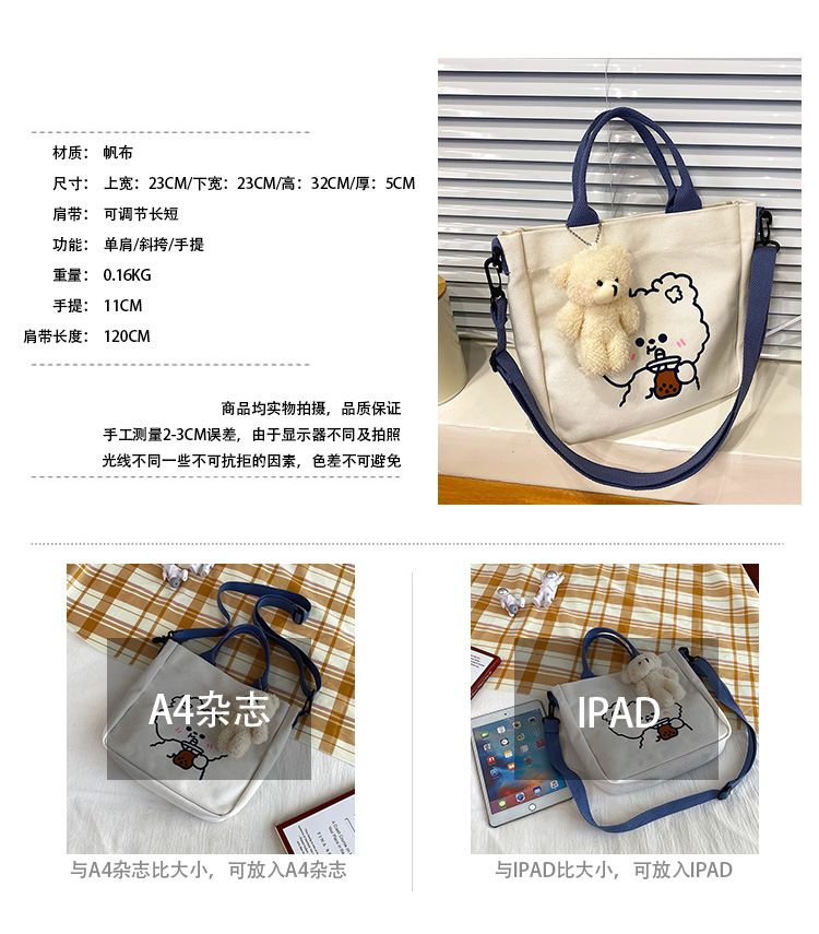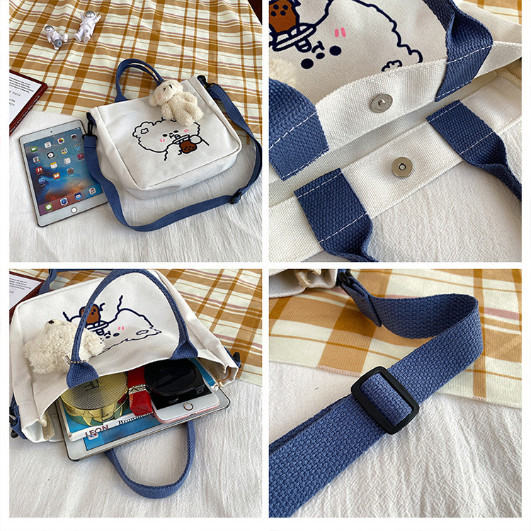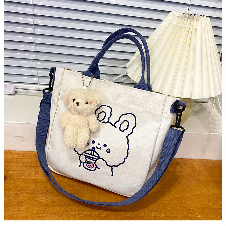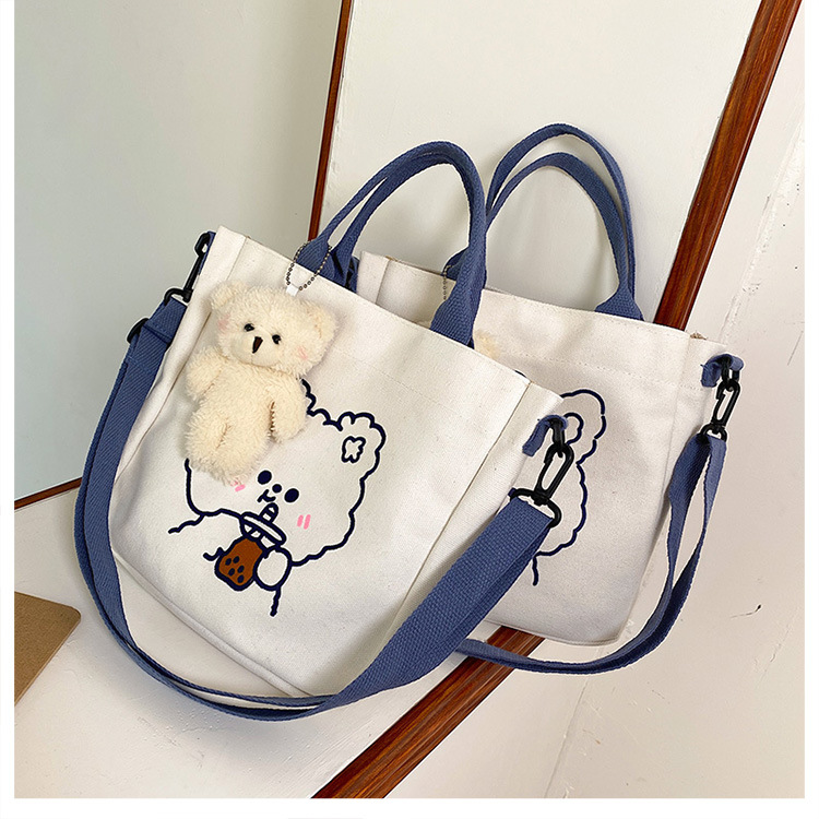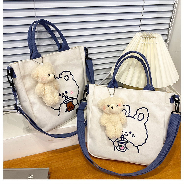 Милая Мультяшная Сумка Медвежонка Кролика Девочка Студент Сумка Для Шоппинга Хранение Модная Кроссбоди Маленькая Тканевая Сумка Большая Канвас Сумка