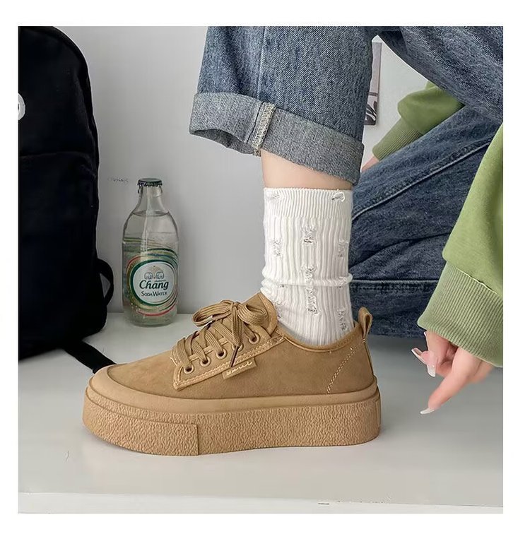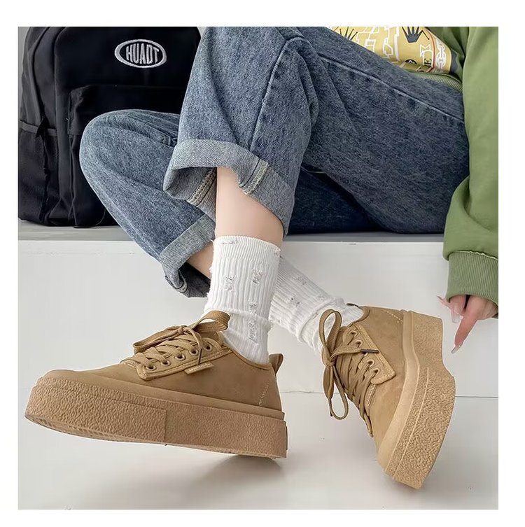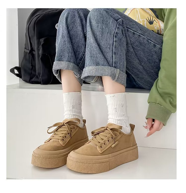 Модные кроссовки для женщин 2025 осень новые ретро круглые носки толстосолые кэжуальные ботинки студентки увеличивающие высоту универсальные спортивные ботинки
