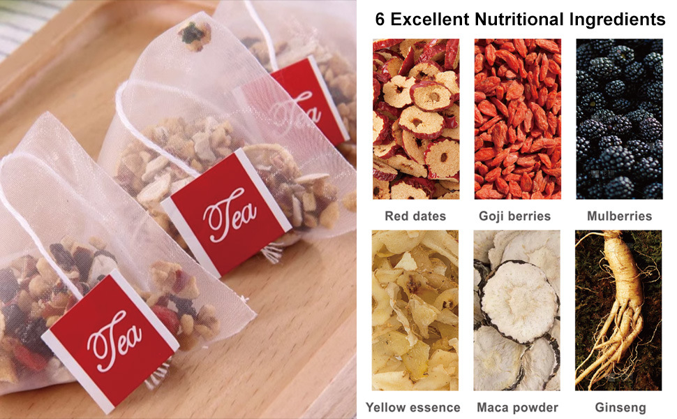 Сырьё и ингредиенты Ginseng (artificially cultivated for less than 5 years), wolfberry, yam, red dates, maca, polygonatum, mulberry, puzzle seed, raspberry