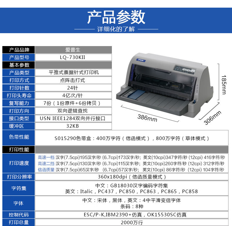 Epson LQ-730KII плоский матричный принтер для счетов, принтер налоговых счетов (82 колонки)