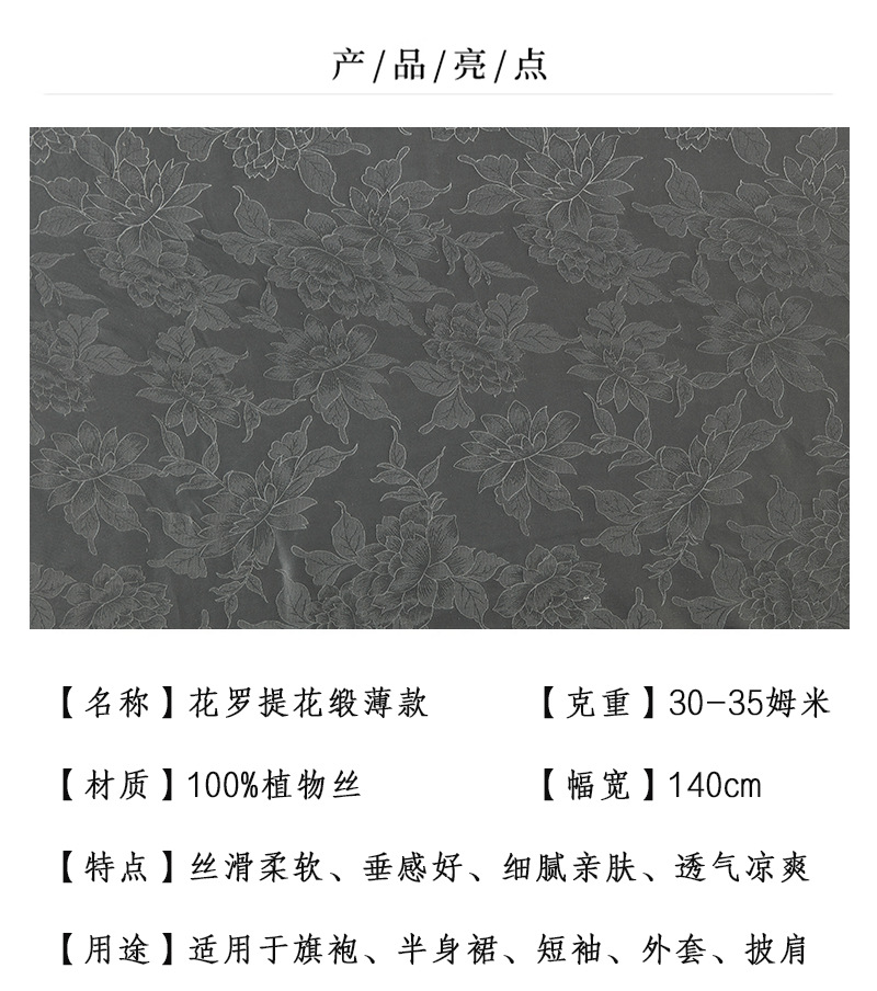 Черная шелковая ткань Сяньюнь, ткань для одежды, переплетенный чистый растительный шелк, человеческий шелк, жаккардовая ткань с цветами Ло