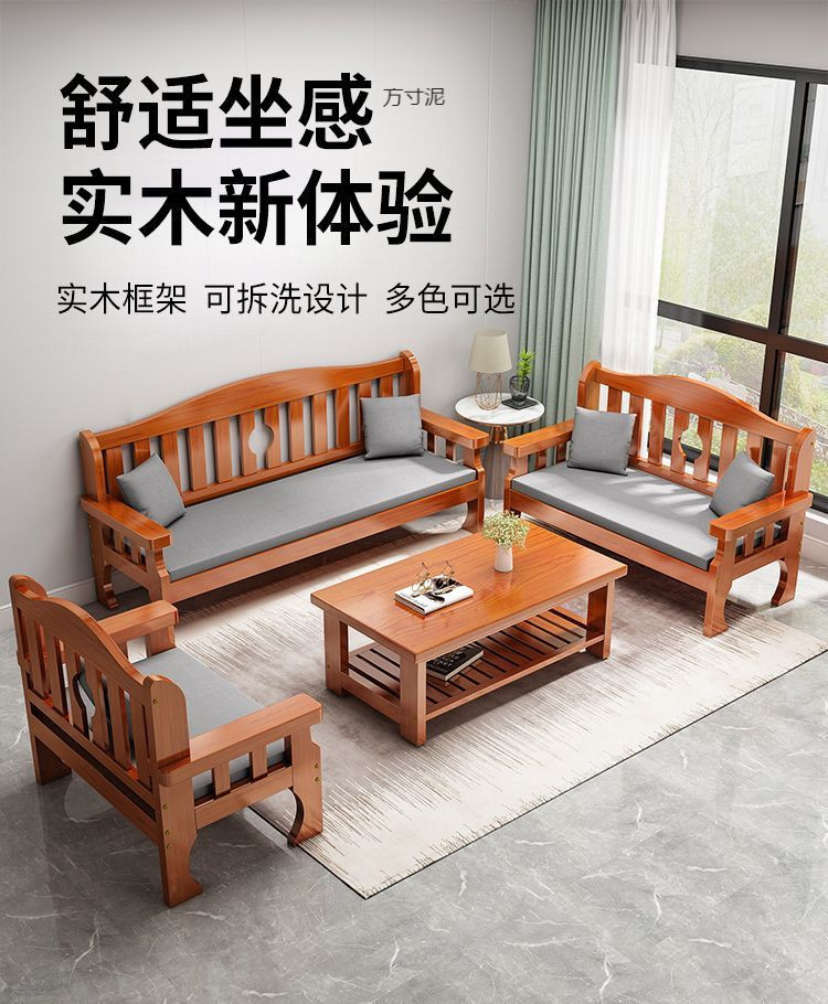 Диван из массива дерева, комбинация, новый китайский стиль, старомодная скамейка, для малой квартиры, деревянный диван для гостиной, сельский, трехместный, фабрика