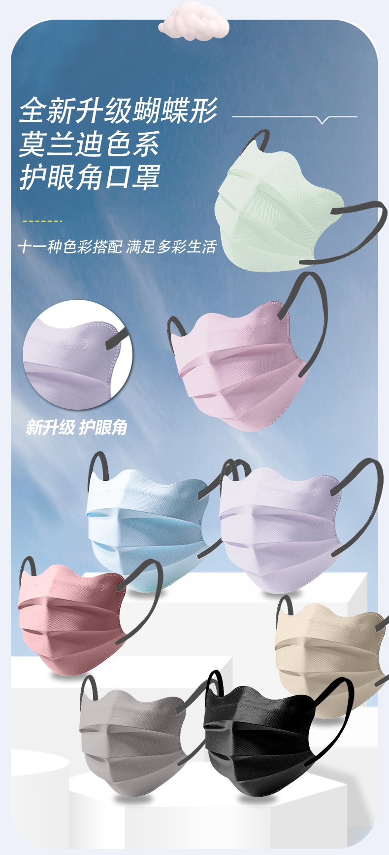 Одноразовая бабочка маска солнцезащитная защита глаз рог макарон моранди лицо небольшая защита дышащая высокая эстетика новый стиль
