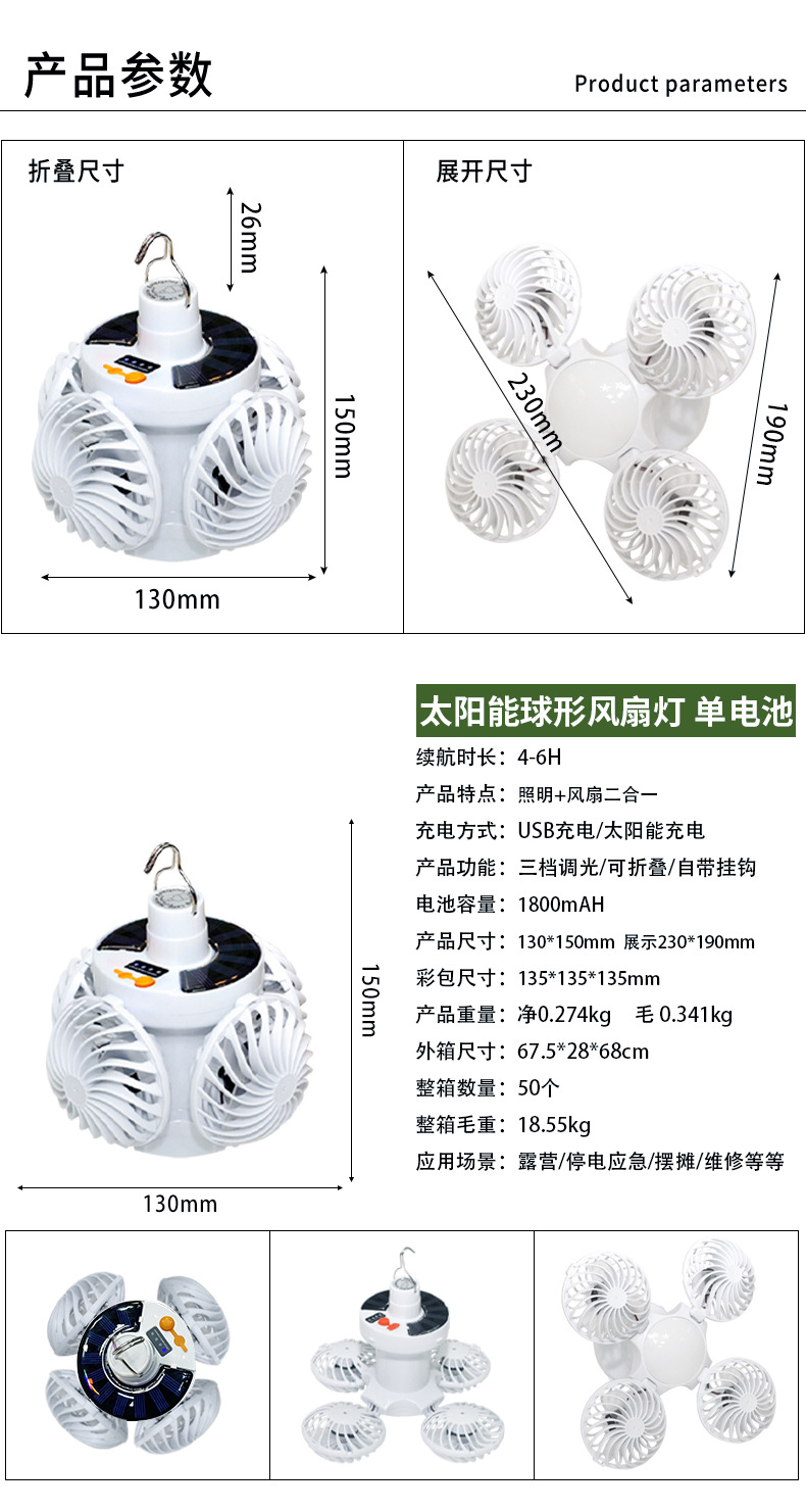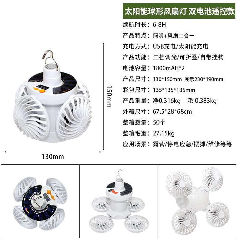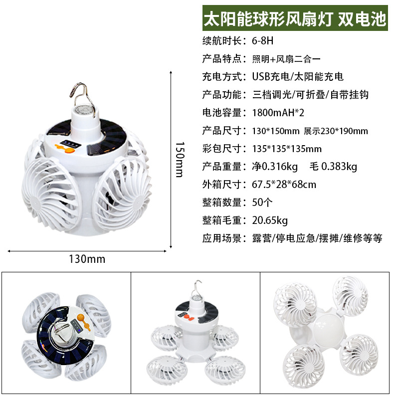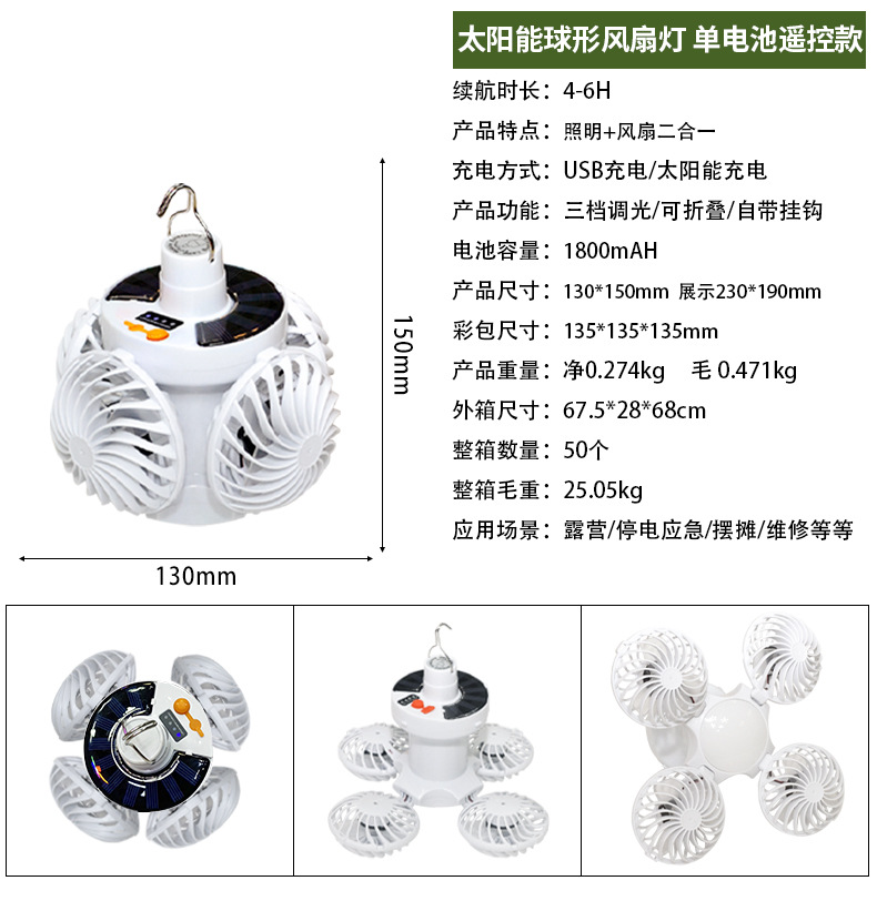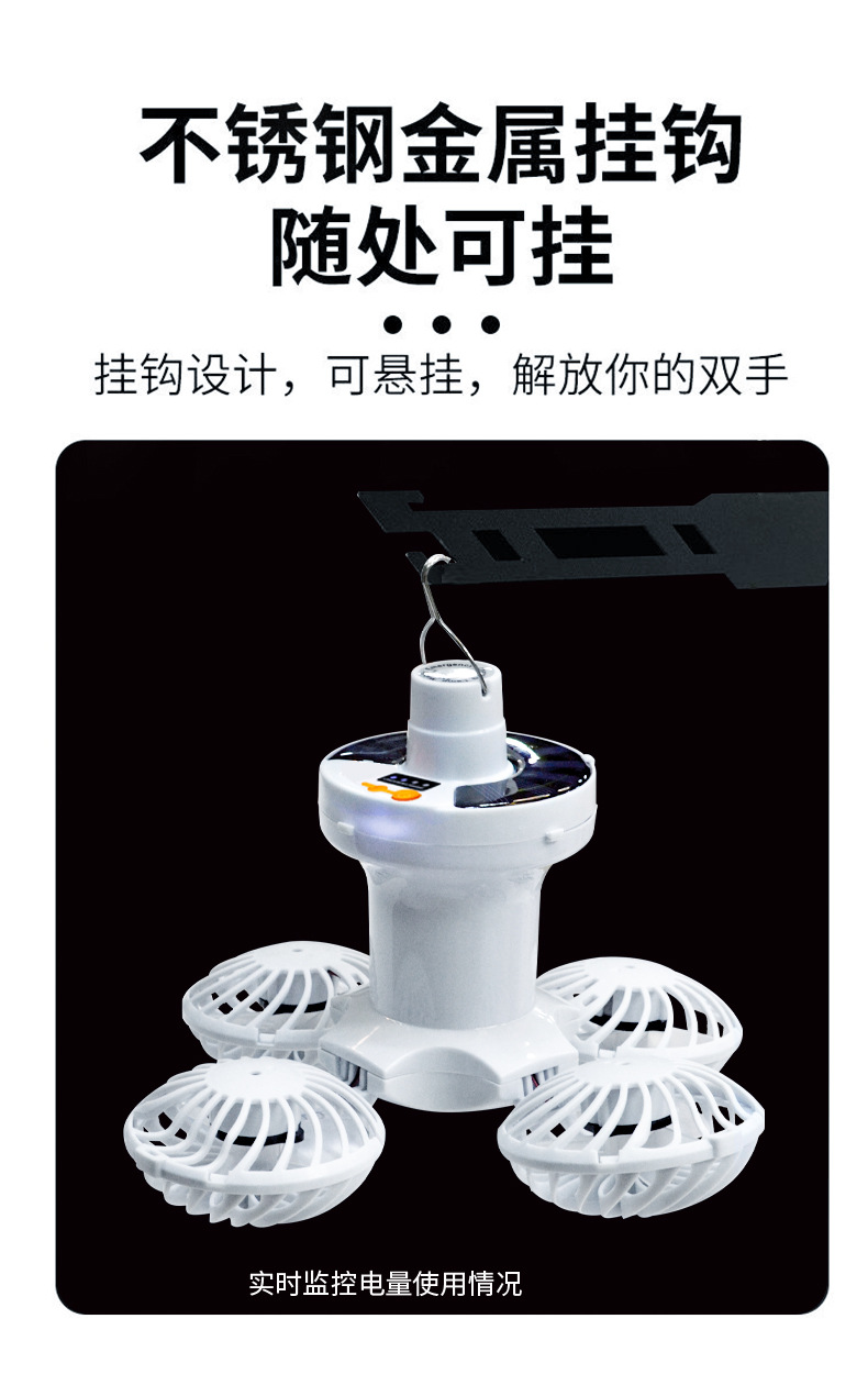 Солнечная зарядная вентиляторная лампа для дома, кемпинга, складная, потолочный вентилятор, 2 в 1, светильник с вентилятором