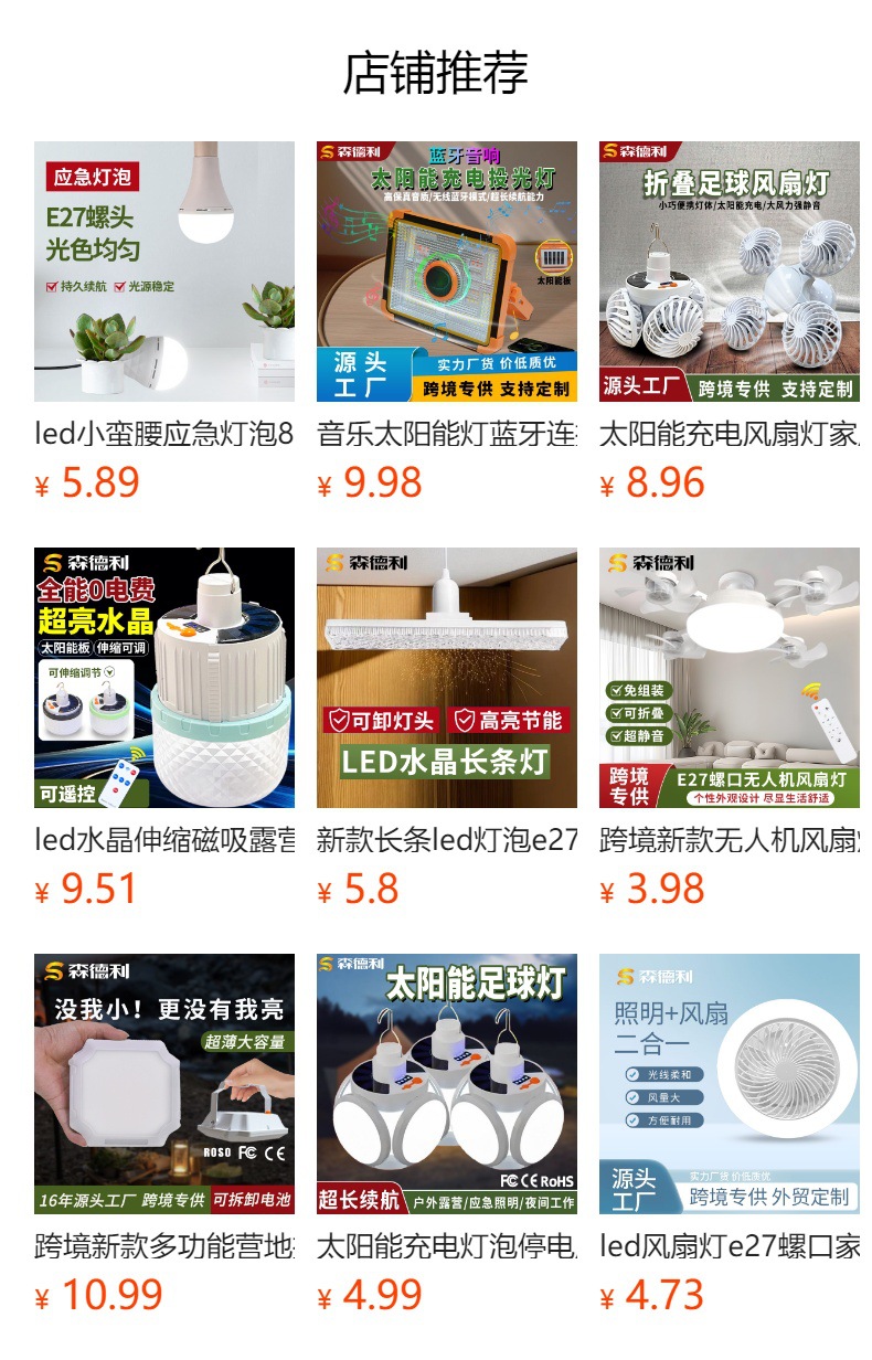 ![]() | Solar fan light [dual battery] | ¥22.98 / ≈ 280 ₽ | 7998 | 5946145327789 | |