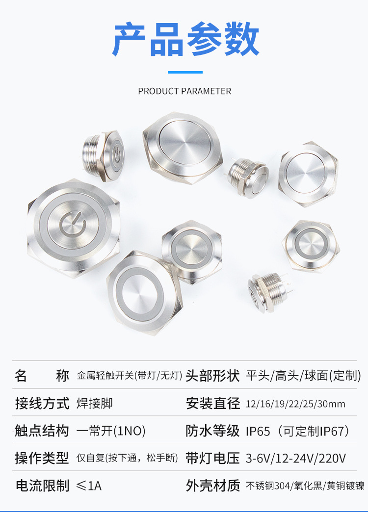 Короткая металлическая кнопка 16/19/22мм, легкое касание, самосбрасывающийся, ультратонкий переключатель с подсветкой