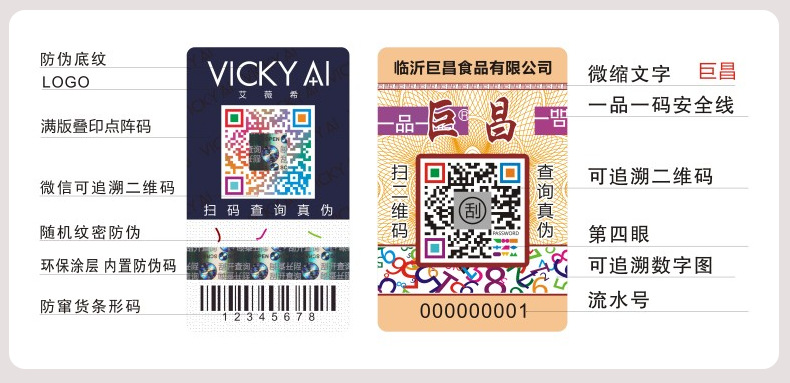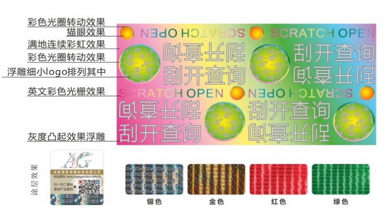 Методы борьбы с подделками Environmentally friendly laser scratch layer/color qr code/pattern password/microtext/anti-counterfeiting shading/random code