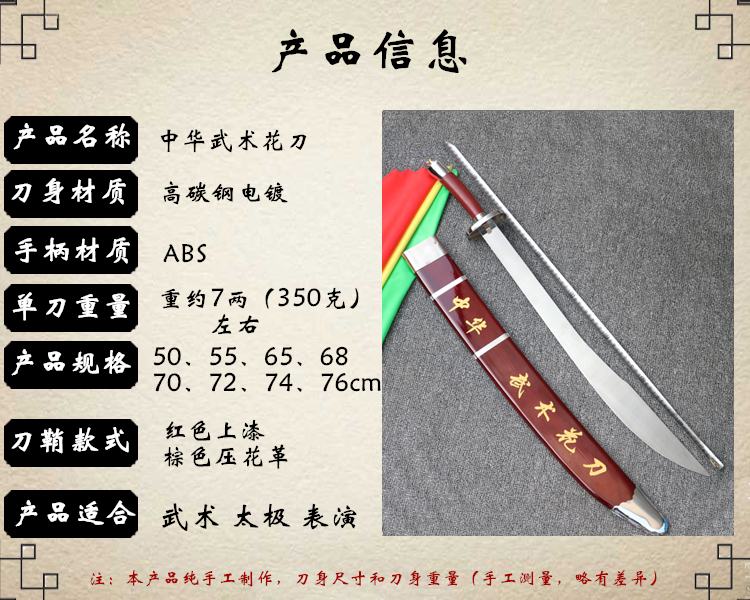 Нож для выступлений по боевым искусствам Нож тайцзицюань Цветочный нож для боевых искусств Один нож Для детей и взрослых Китайский нож для боевых искусств Мягкий нож Звенящий нож Без лезвия