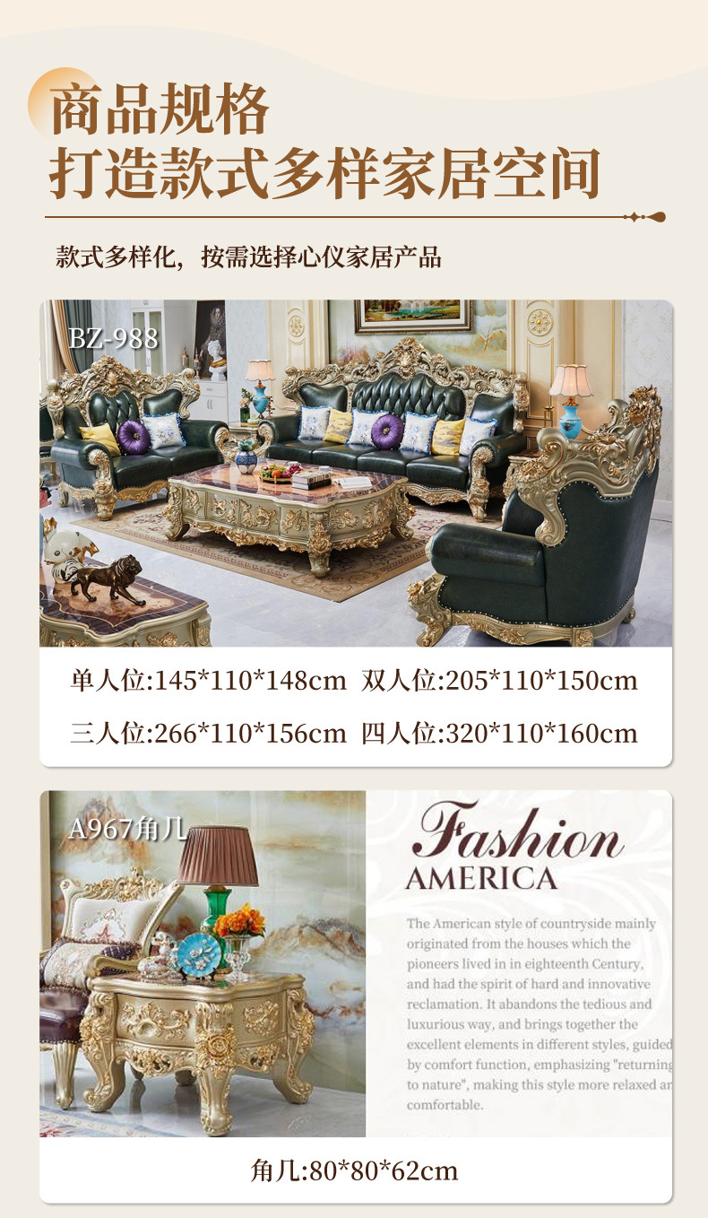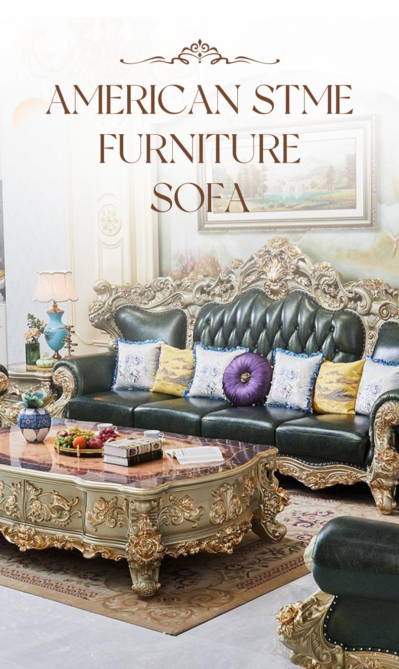 Диван в американском стиле, легкая роскошь, высококачественный, из кожи верхнего слоя, для виллы, французский стиль, резной из белого дуба, комбинация с золотой отделкой