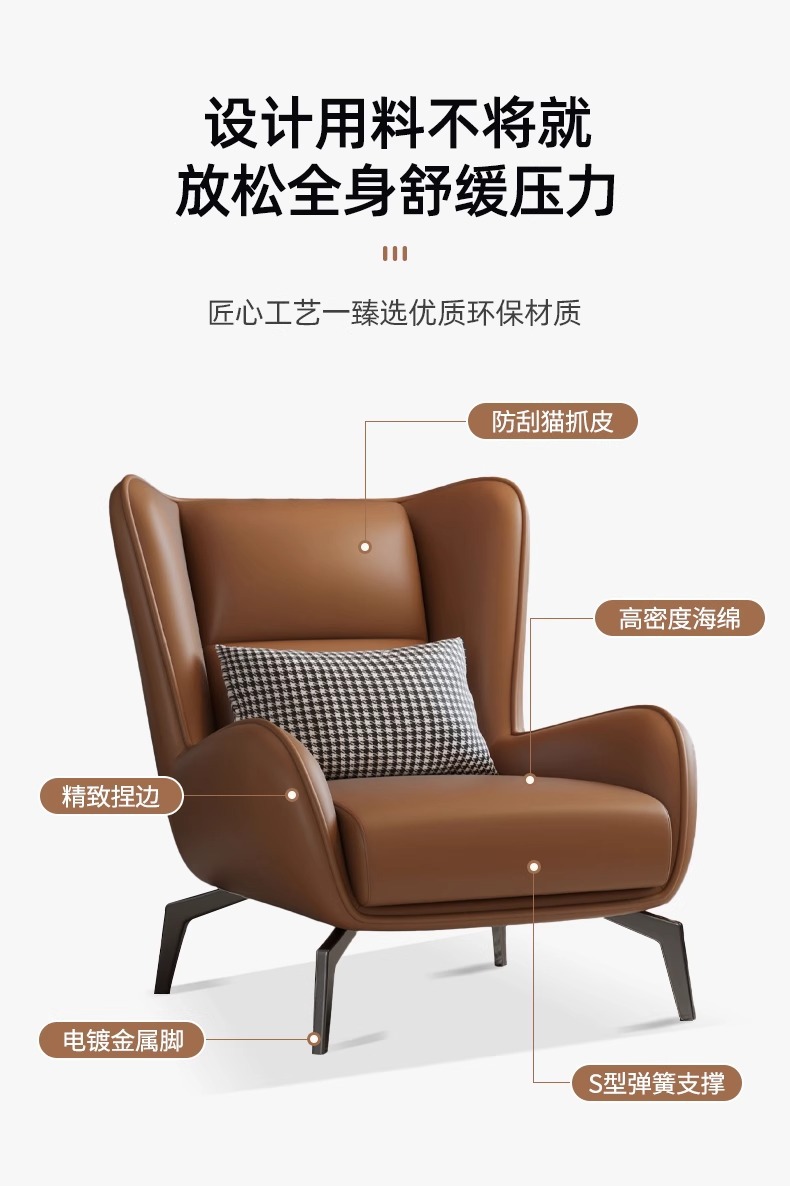 Итальянский легкий люксовый односпальный диван-стул для гостиной, минималистичный, дизайнерский, с ленивой спинкой, для отдыха в спальне