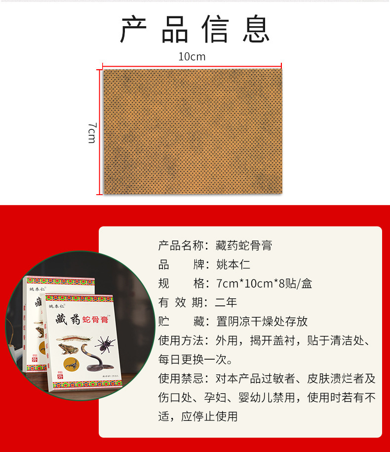 ![]() | 7cm*10cm*8 stickers/box | Yao benren Xizang medicine snake bone paste | ¥0.56 / ≈ 7 ₽ | 45938 | 5892825512413 |