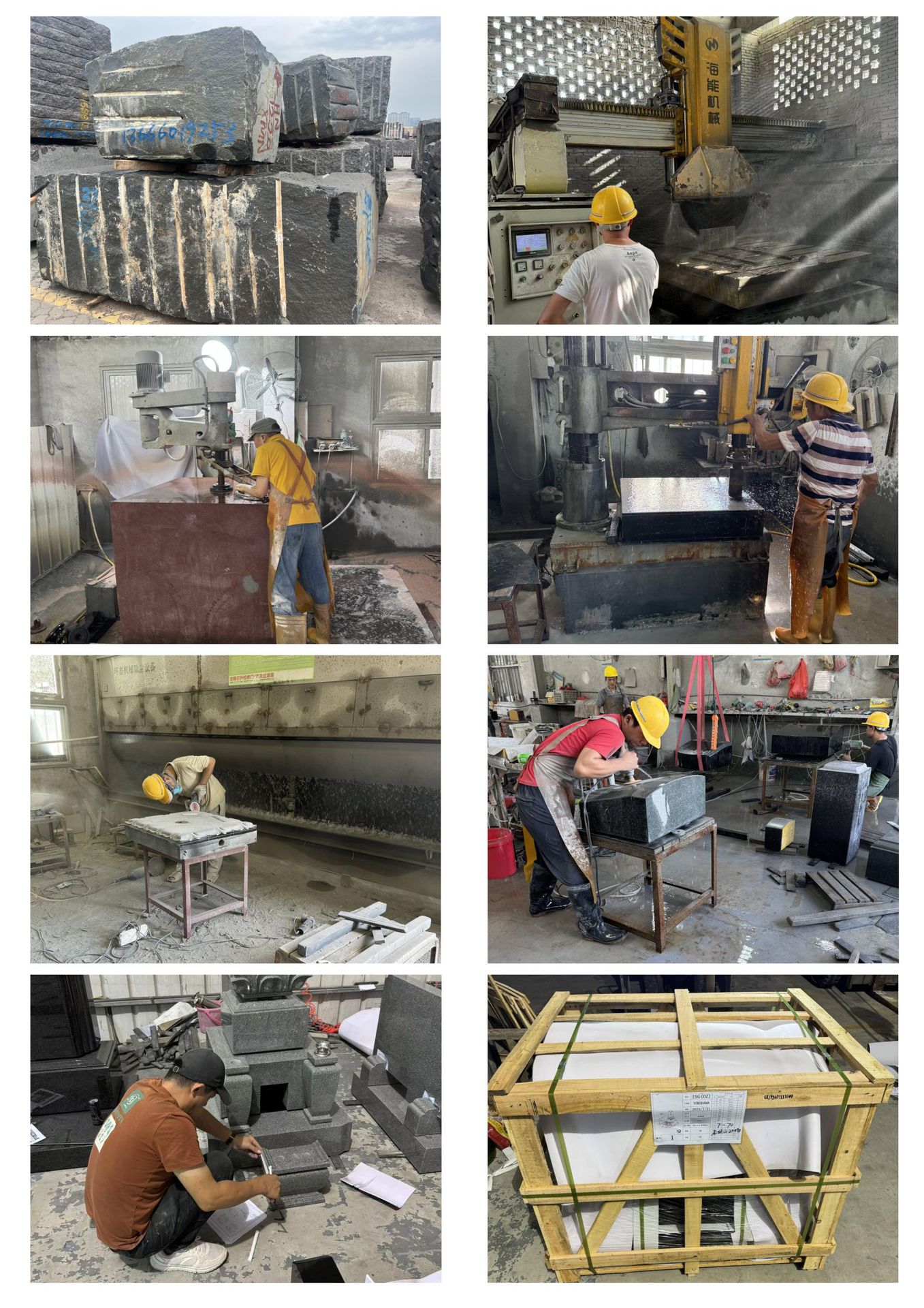 荒料⇒切割⇒研磨⇒钻孔⇒造型⇒水磨⇒成品检验⇒包装
