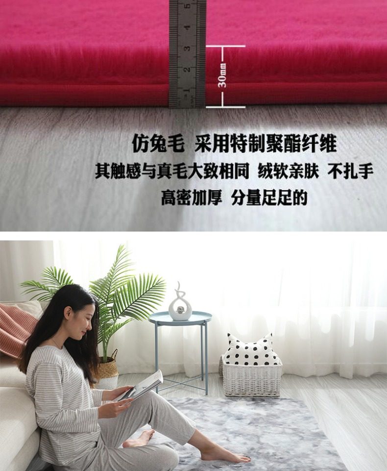 Коврик из кроличьего меха для гостиной, утолщенный, розовый