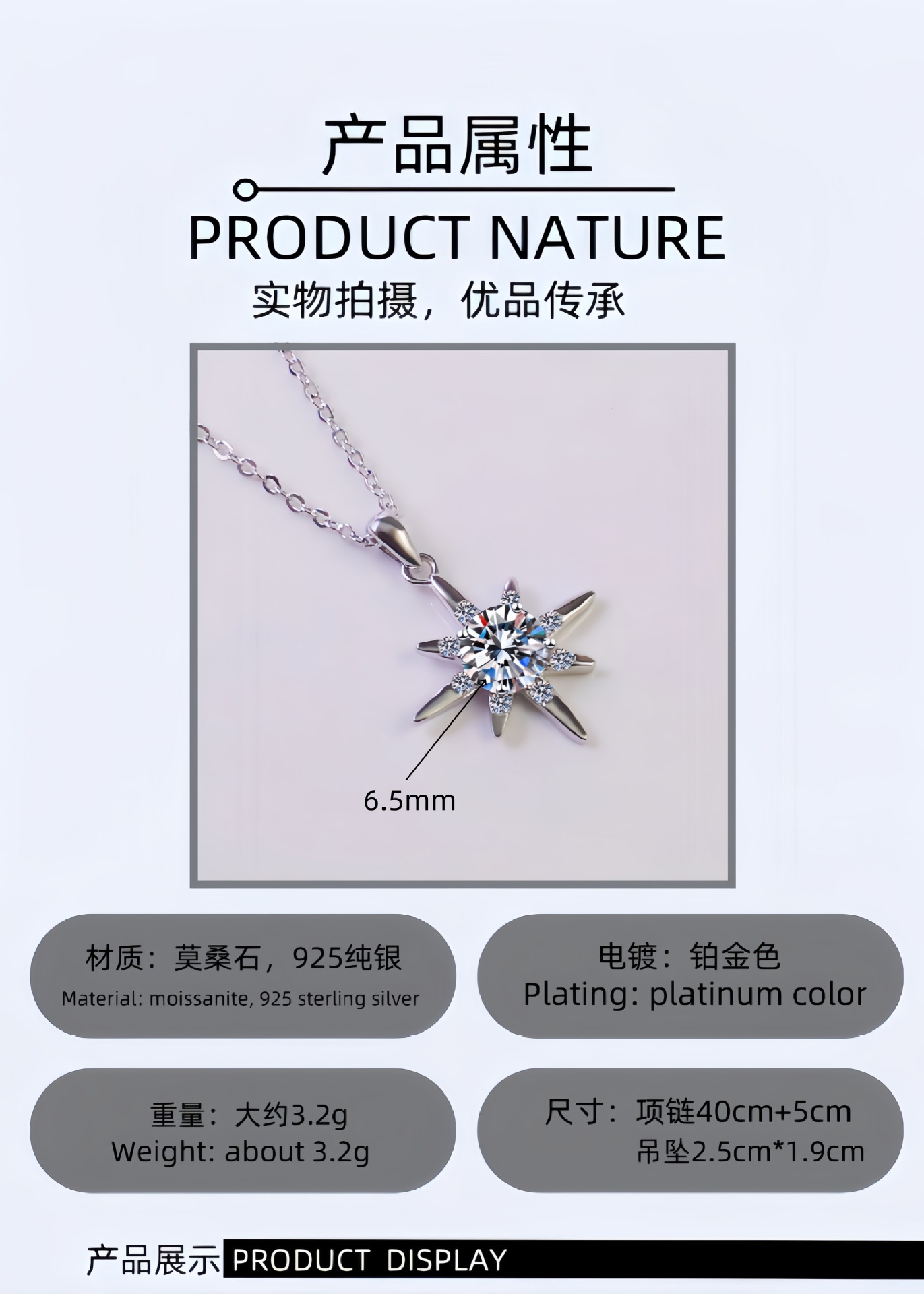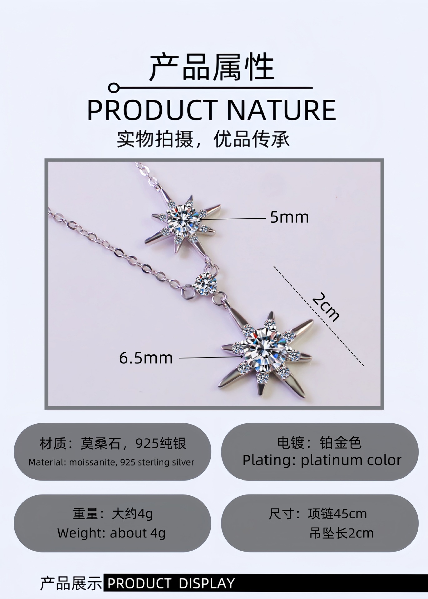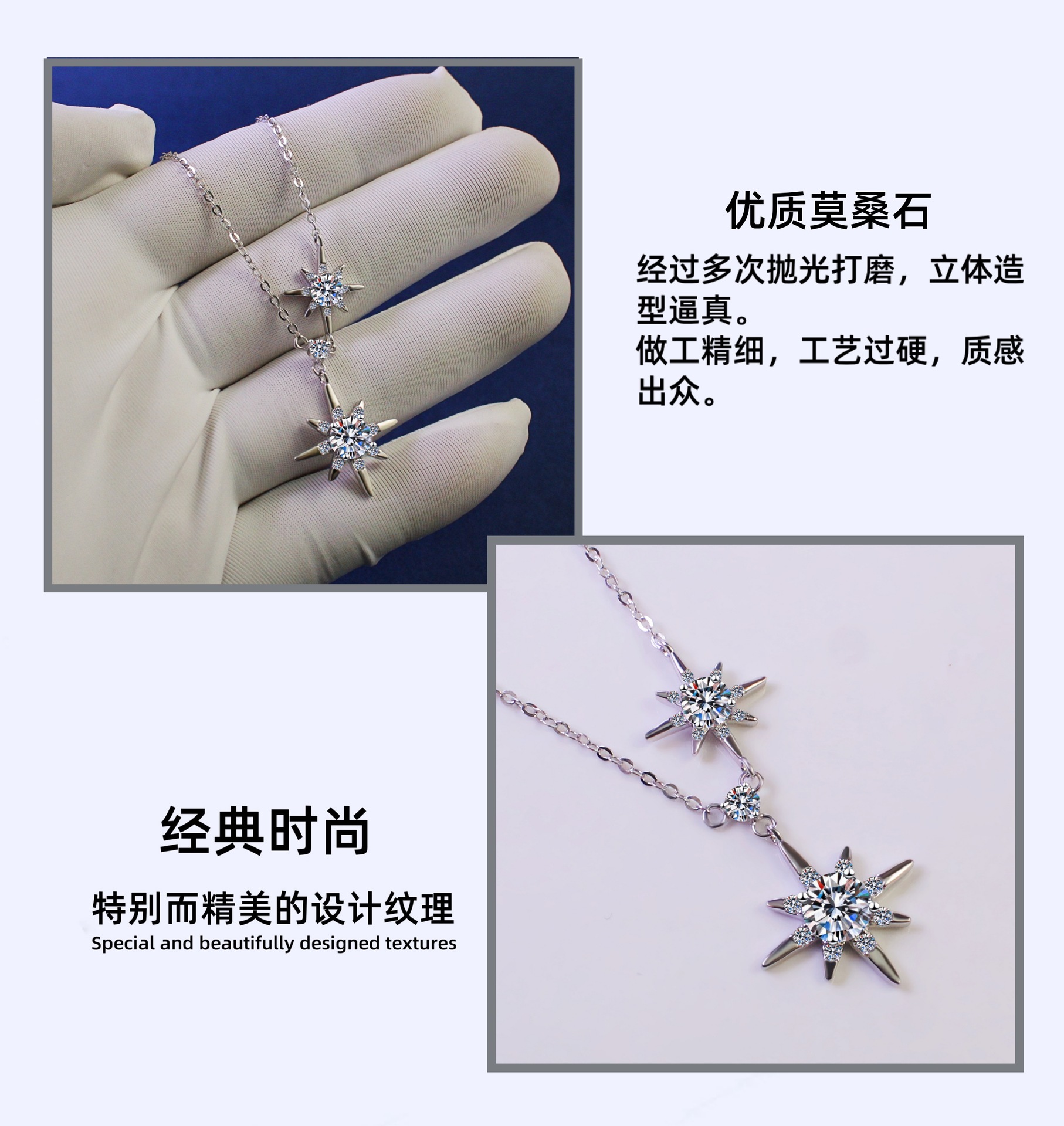 Оригинальный дизайн D цвета моиссанита Ожерелье в форме шестиконечной звезды Подвеска S925 стерлингового серебра Ожерелье для женщин Прямые поставки с завода