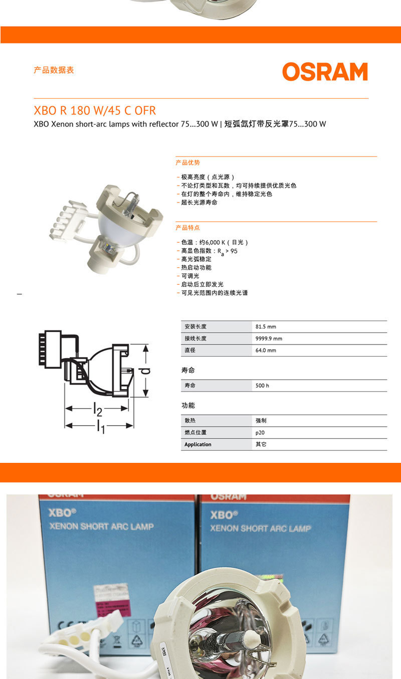 Лампа Osram Xenon Xbo R 180W/45C Ofr Zeiss S88 5123 5124