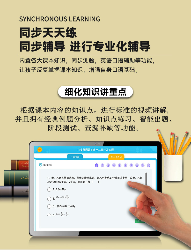 Планшет для обучения с экраном 10.1 дюйма, индивидуальная разработка, защита глаз, синхронизация учебных материалов для младших классов