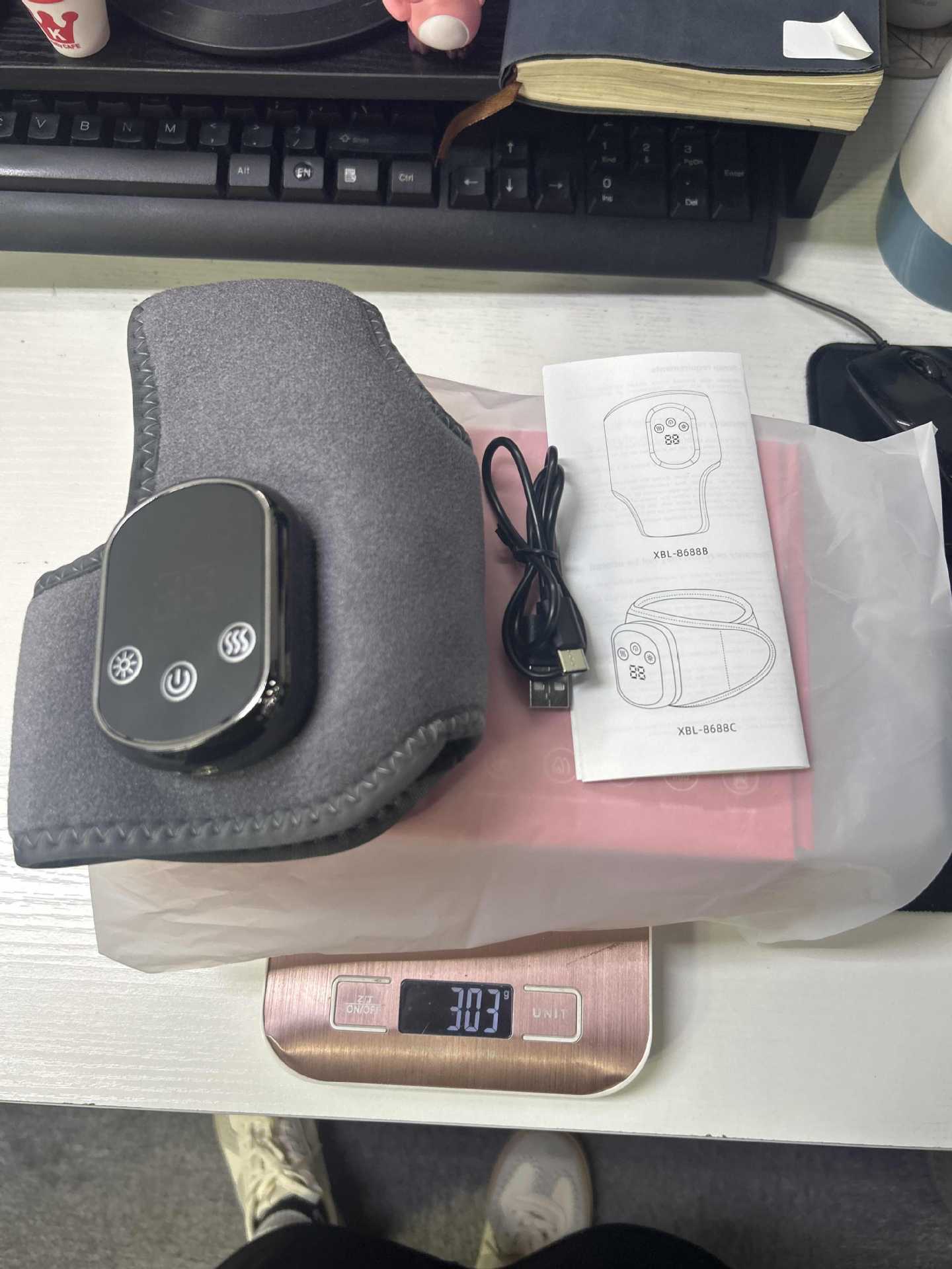 包装清单:中性英文飞机盒/ 1*灰色护脚踝(含主机,且主机不可拆卸),1*英文说明书,,1*Type-c充电线