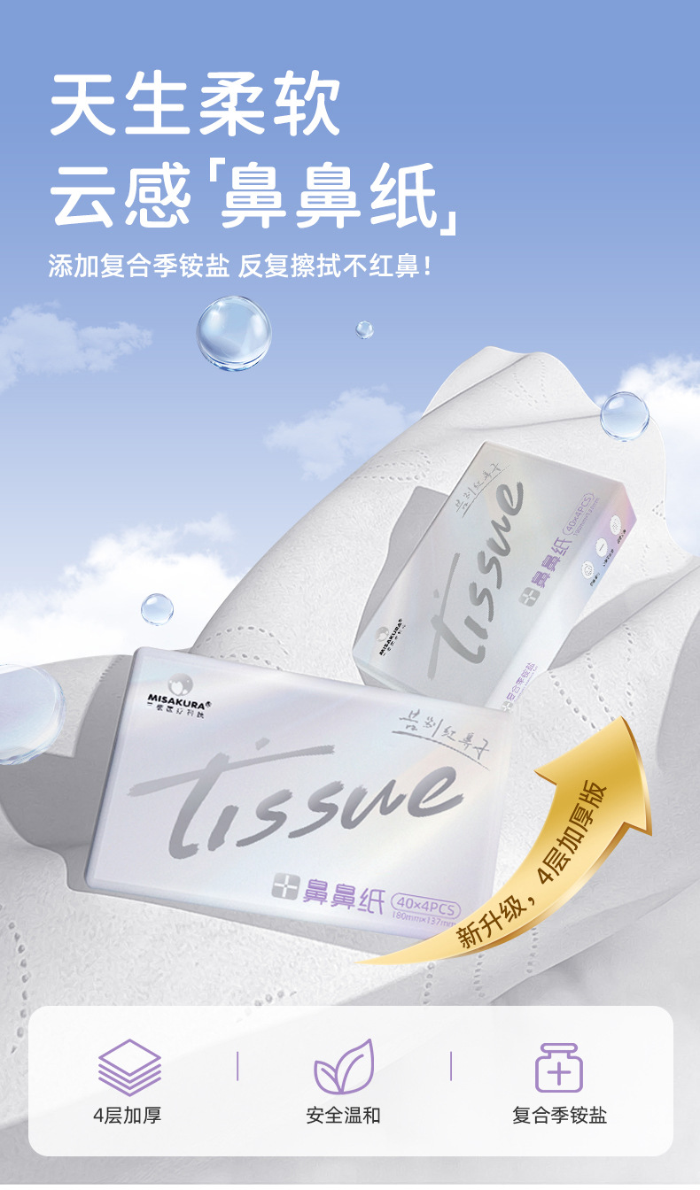 Фабрика мягких салфеток для носа, полная коробка, четырехслойная кремовая бумага, увлажняющие облачные мягкие салфетки