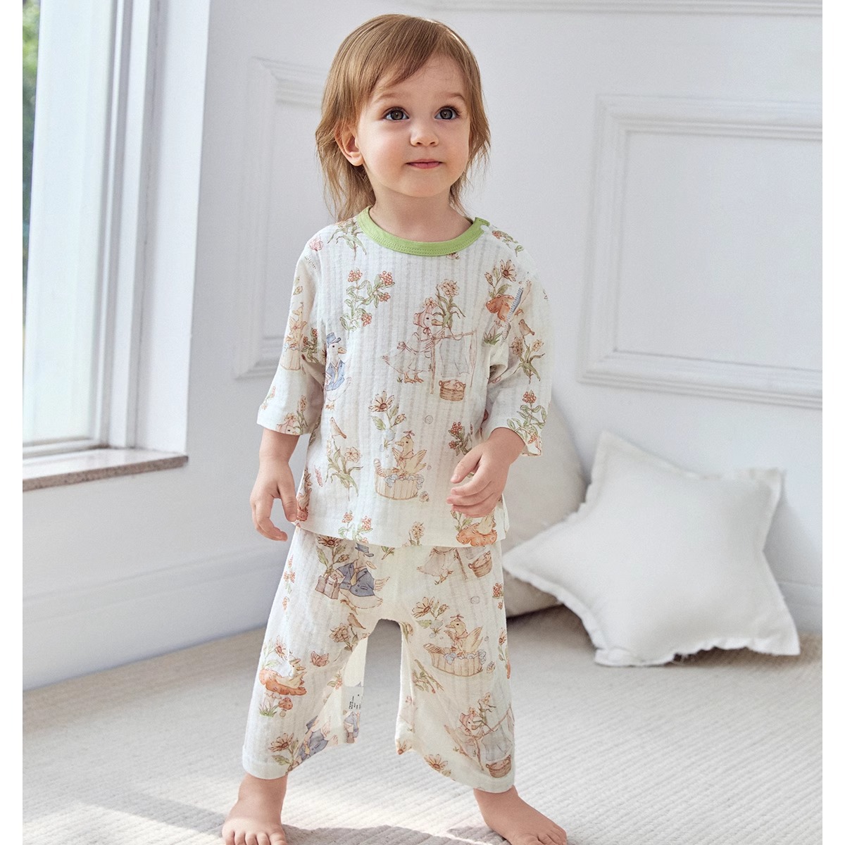 Пижамы для малышей Jingqi, чистый хлопок, A-класс, летние тонкие три четверти рукава, одежда для кондиционеров, домашний комплект для мальчиков и девочек