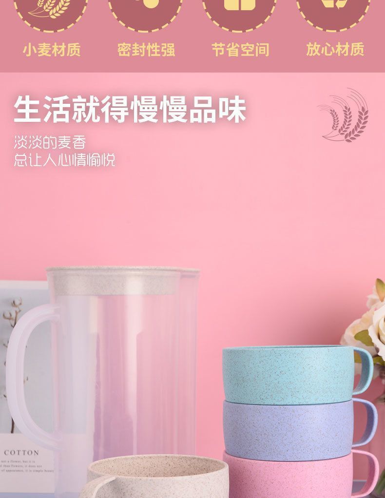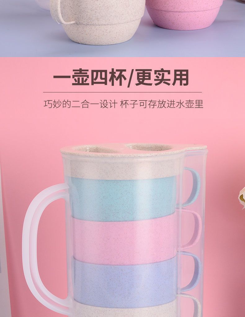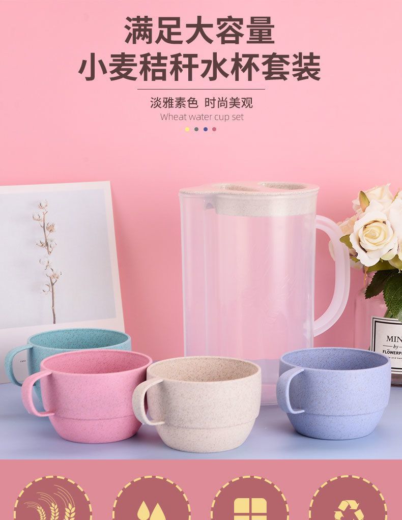 Пластиковый чайник для холодной воды из пшеничной соломы, стиль Ins, термостойкая чайник, соковница, набор из пяти предметов