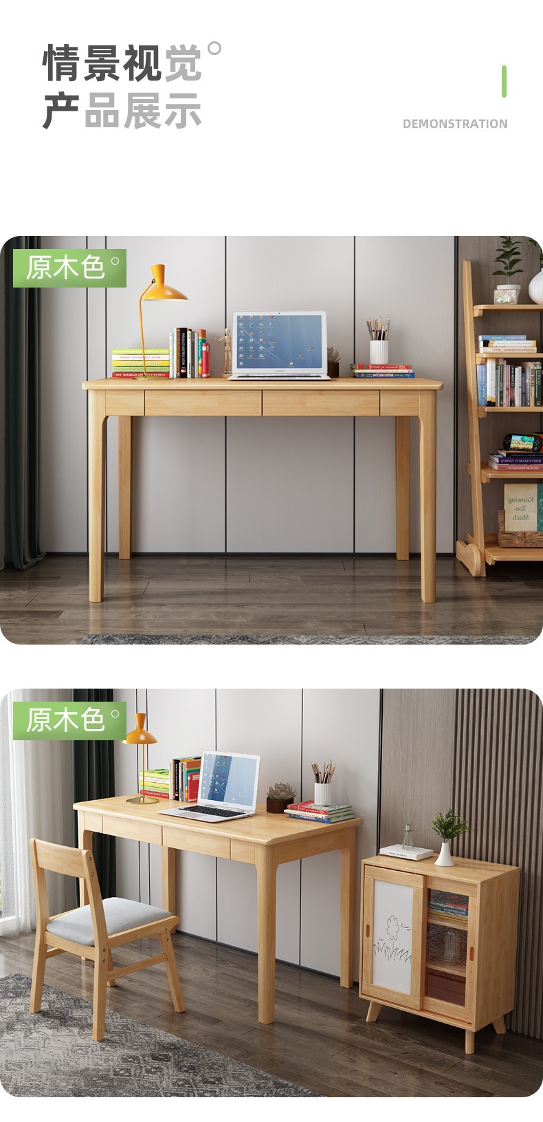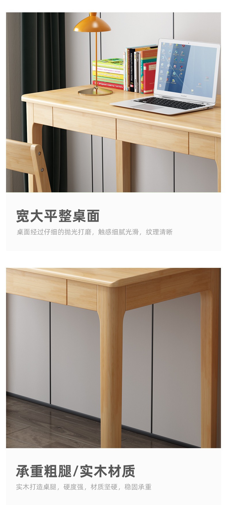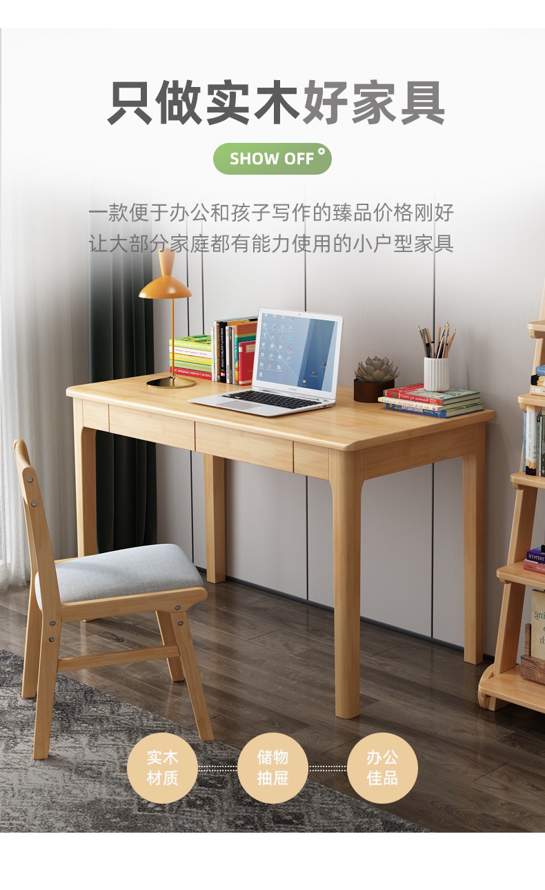 Современный минималистичный компьютерный стол из массива дерева для маленьких квартир