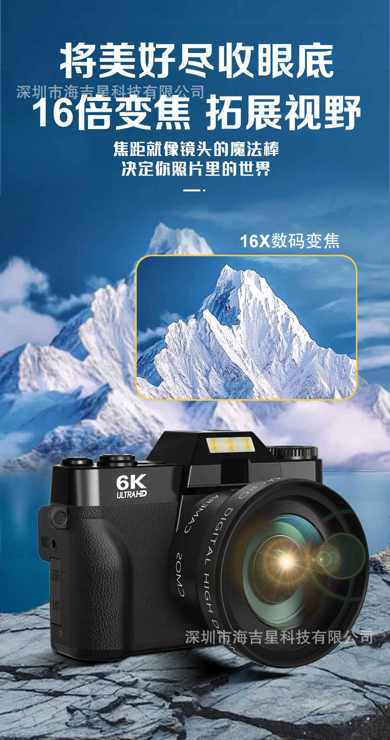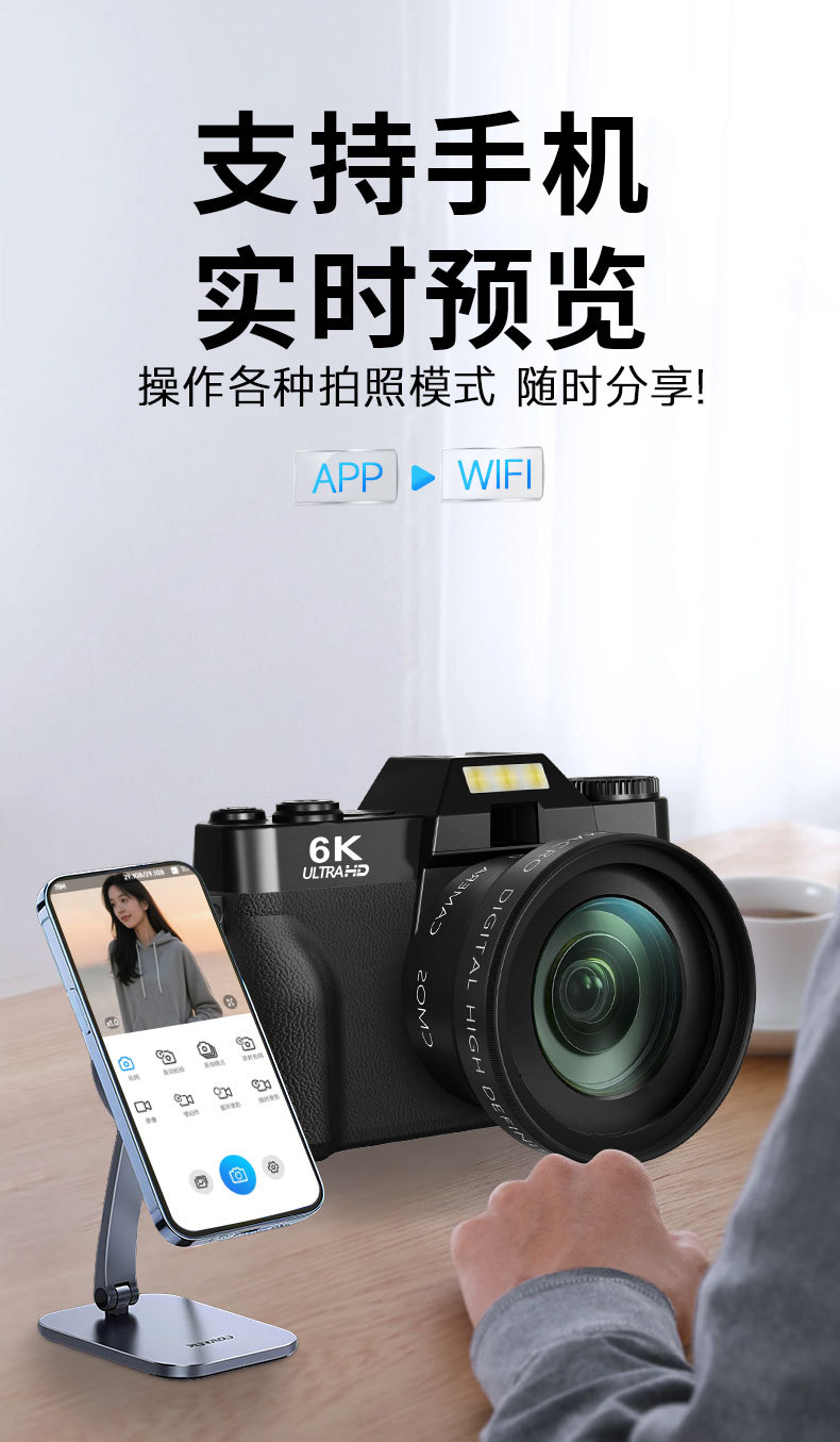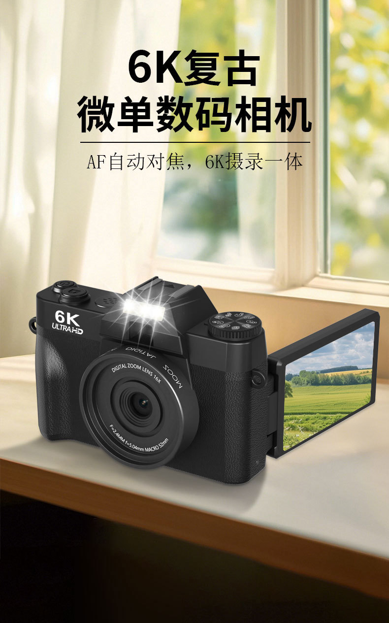 Кросс-бордерная 6K беззеркальная камера с Wi-Fi, переворачивающимся экраном, селфи-камерой, ретро цифровая камера для студентов