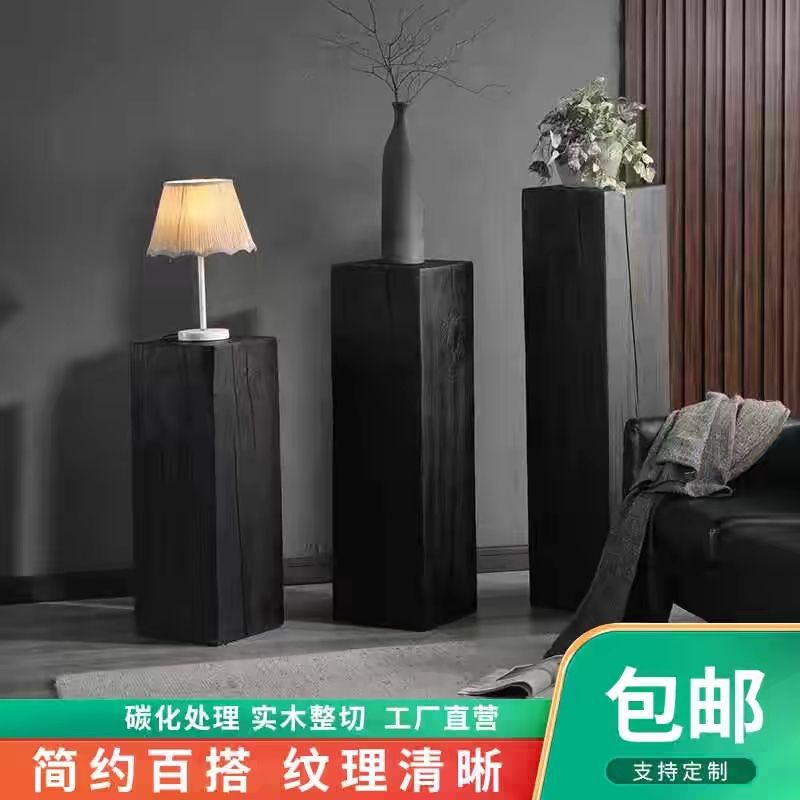 Скандинавский карбонизированный деревянный пень, орнамент, подставка для цветов, квадратный пень в стиле ваби-саби