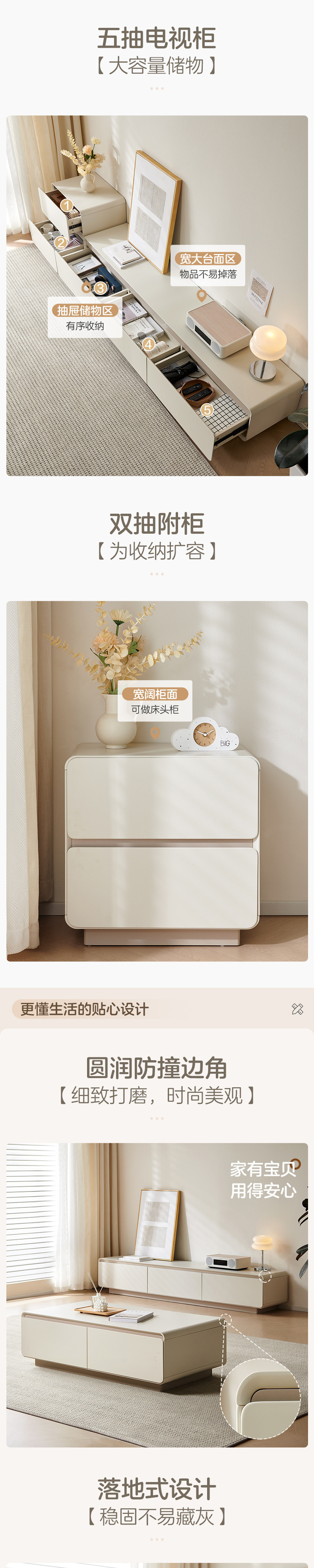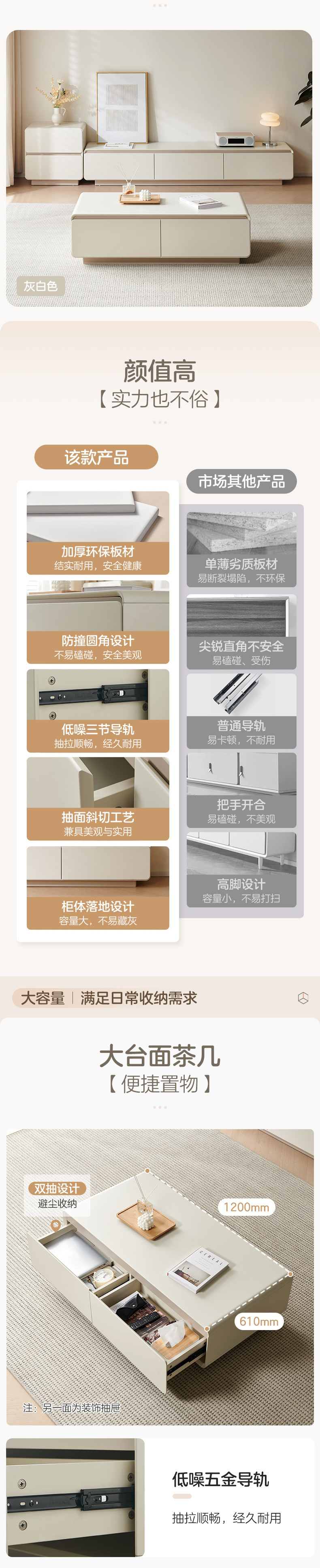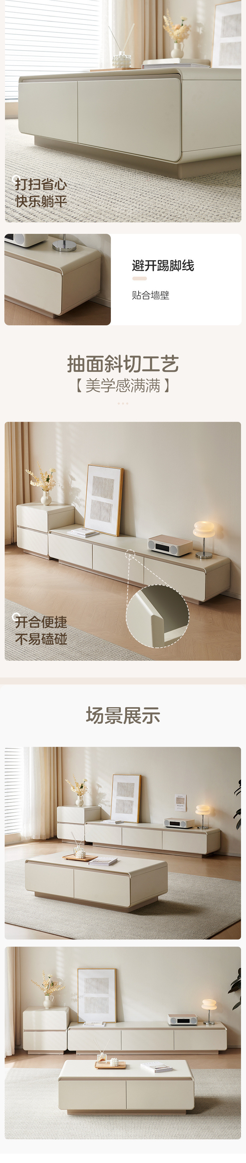 Легкая роскошь, кофейный столик, комбинация с ТВ-кабинетом, современный кремовый стиль, напольный диван
