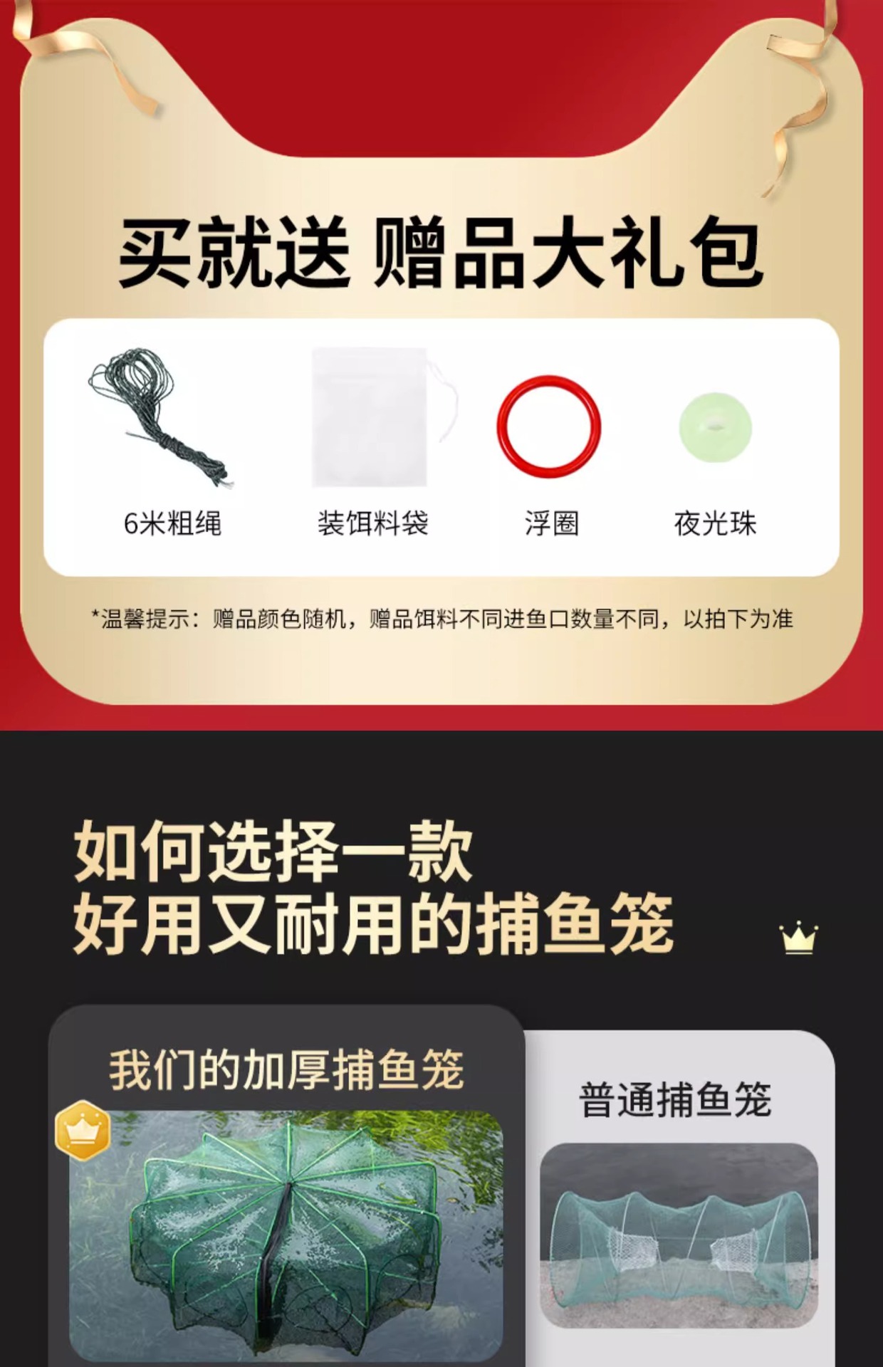 ![]() | Bold and thickened 6-hole 60cm fishing cage - knot-free - 1 piece [no gifts] | ¥4.8 / ≈ 58 ₽ | 9989 | 5949173662477 | |