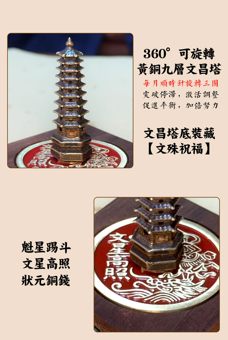 Медный 9- и 7-этажный вращающийся Вэньчан Тауэр, украшение, Вэньчан ручка, тройной гравированный подарок для студентов