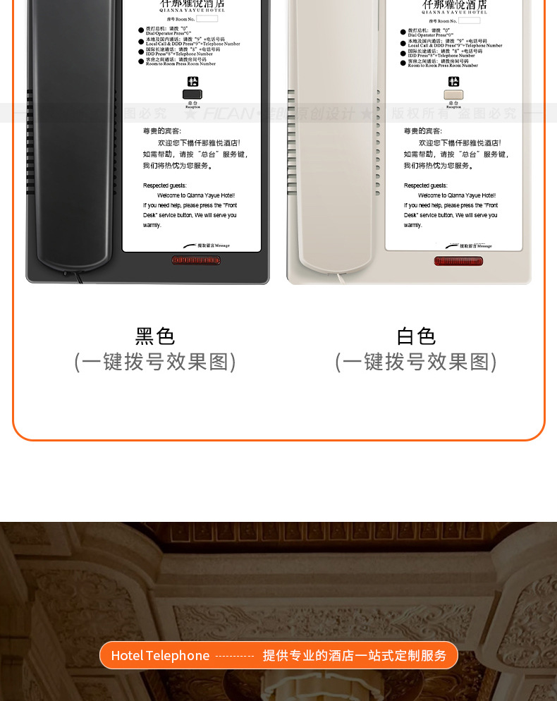 Feichuang телефон для гостевой комнаты гостиницы специальный внутренний стационарный телефон с индивидуальным логотипом быстрый набор
