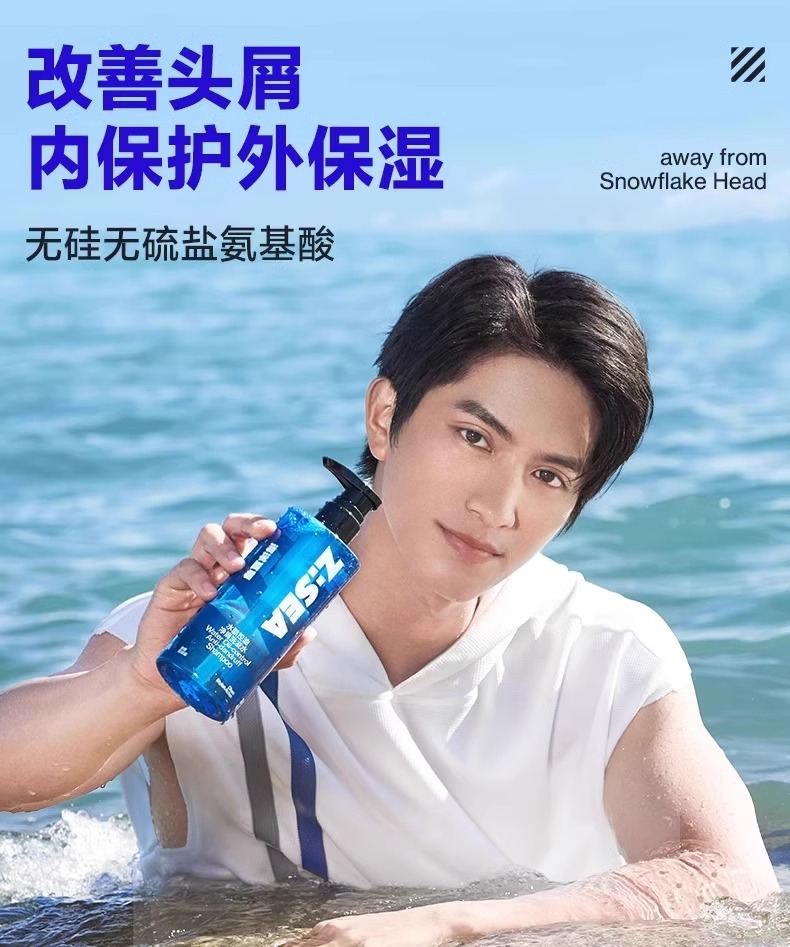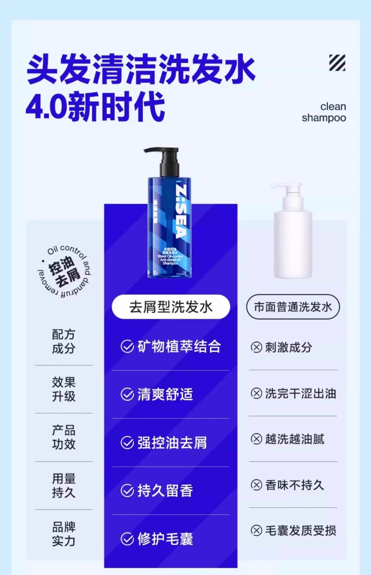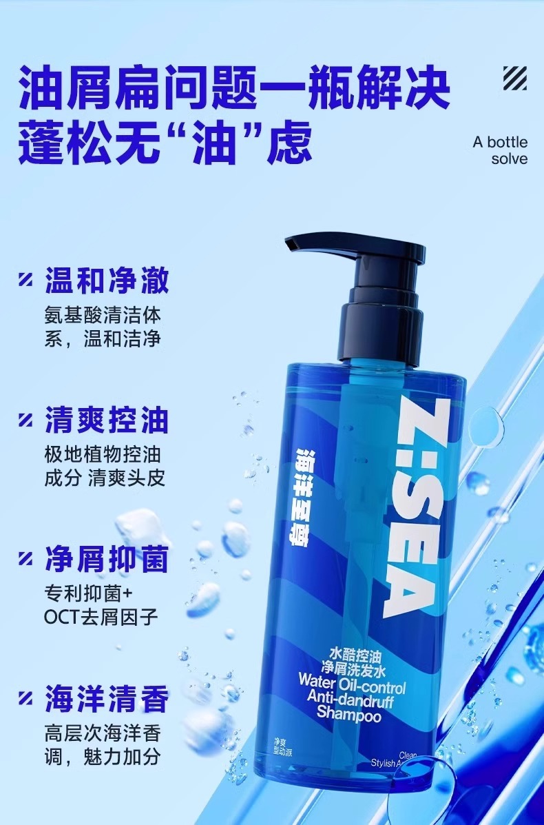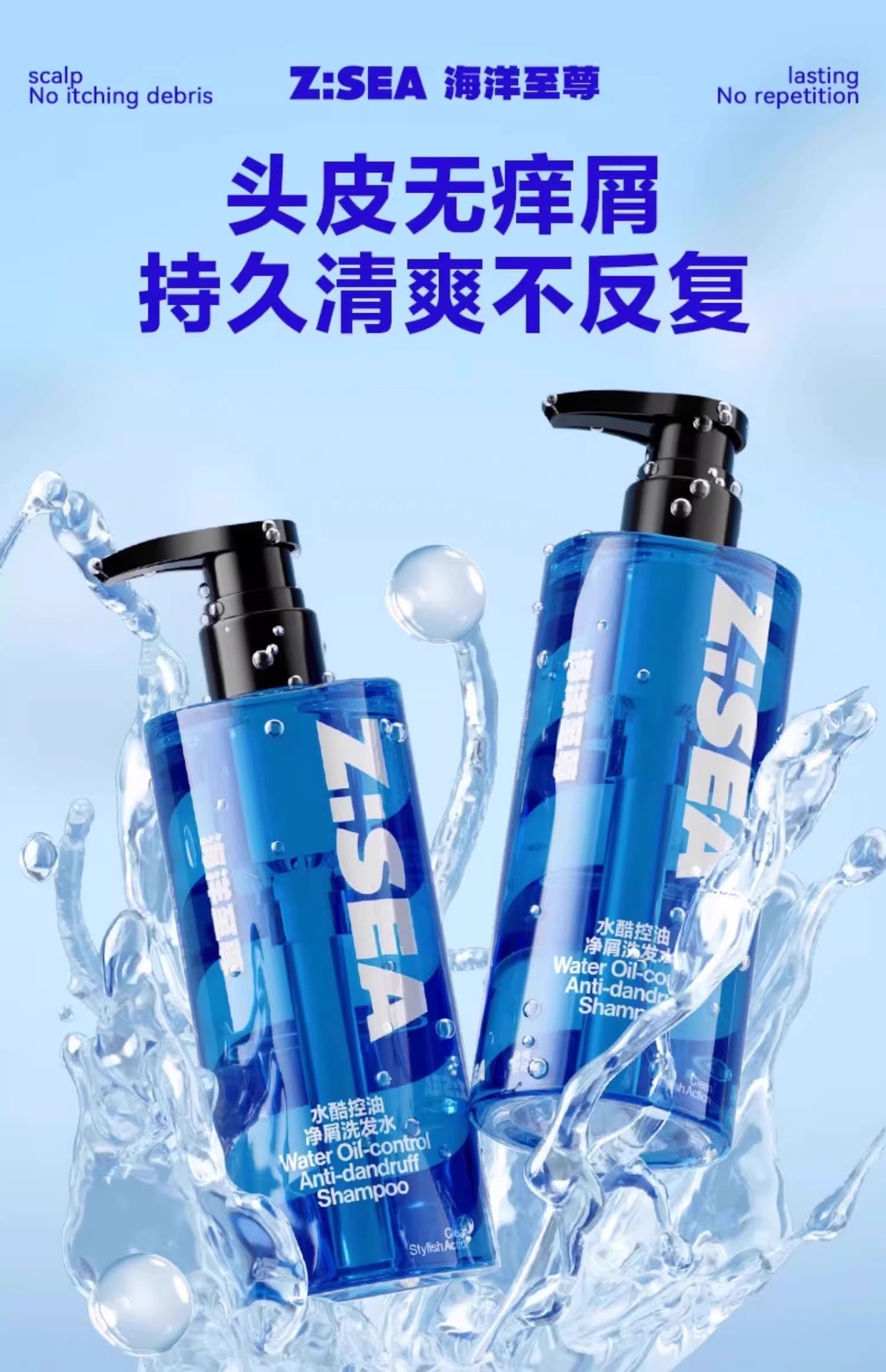Шампунь Zsea Ocean Supreme, контроль масла, против перхоти, специальный для мужчин, пушистый, против зуда, длительный аромат, летний