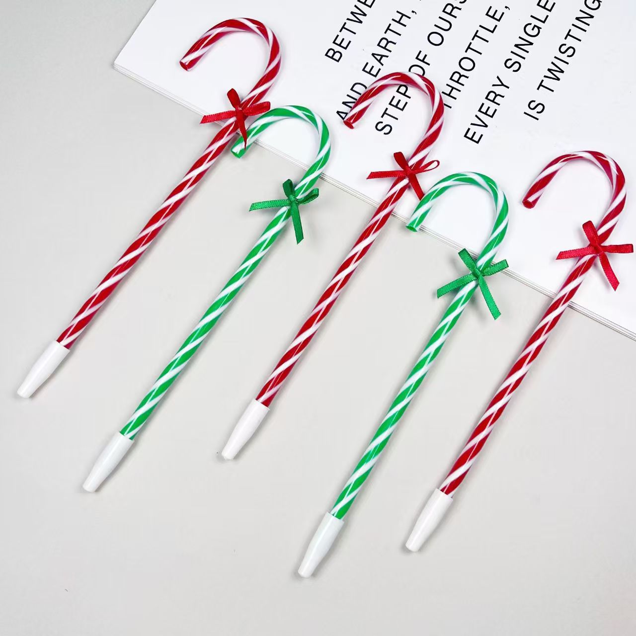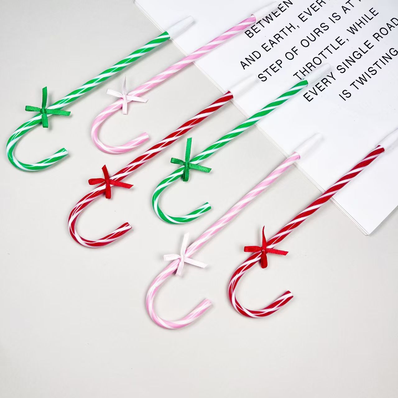 Цветная изогнутая подарочная мультяшная ручка, рождественская тростниковая ручка, полосатая шариковая ручка, креативная экоподходящая ручка