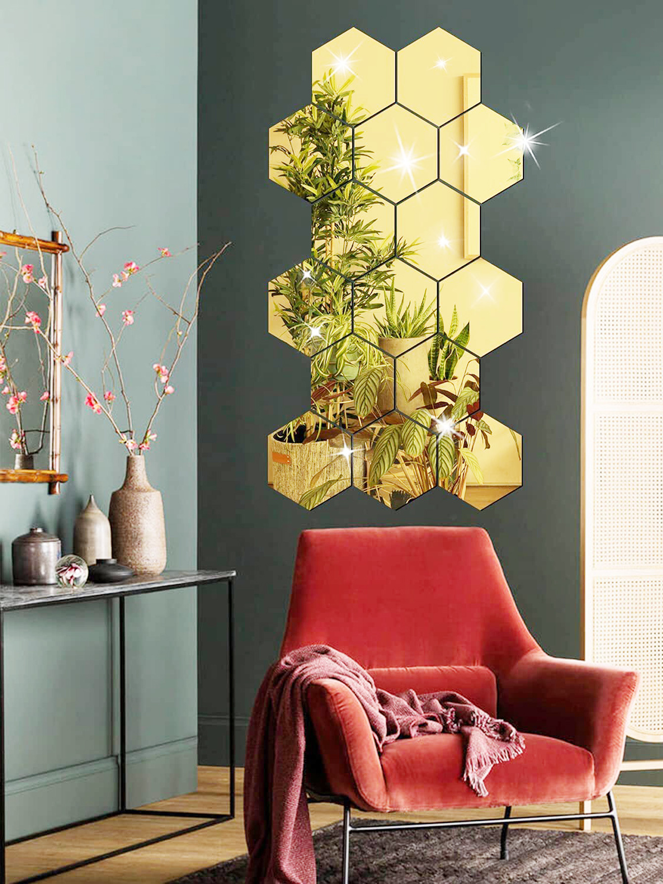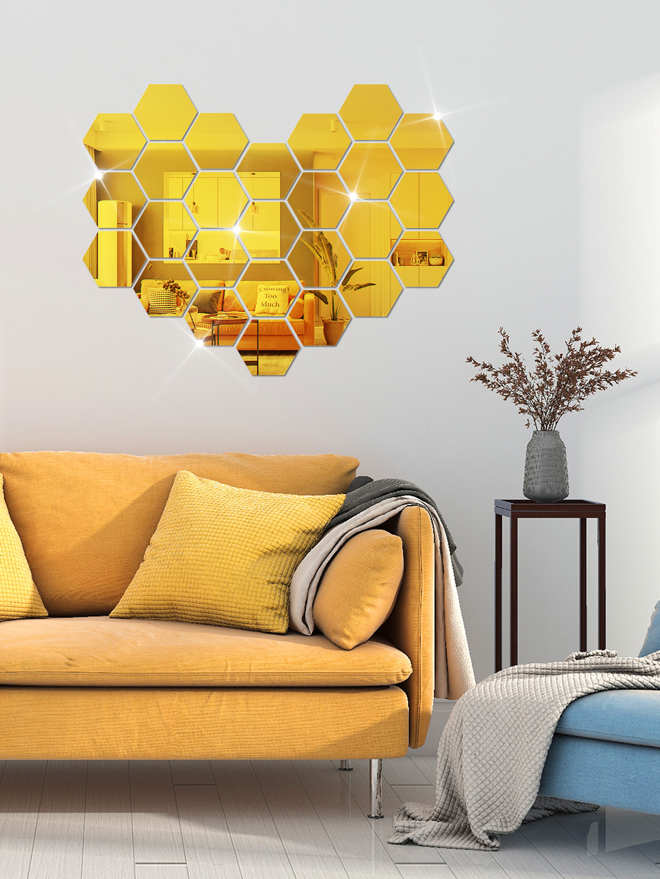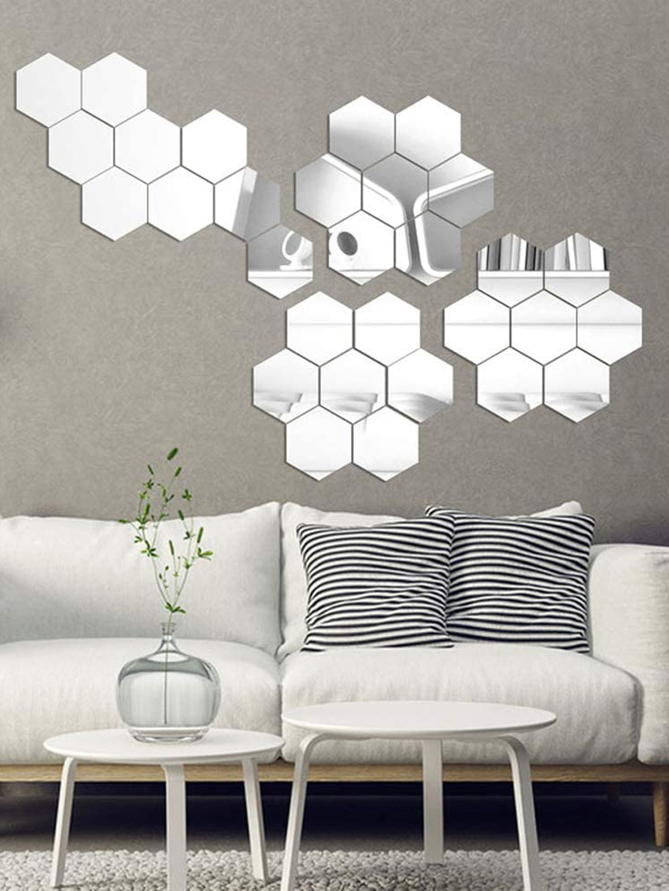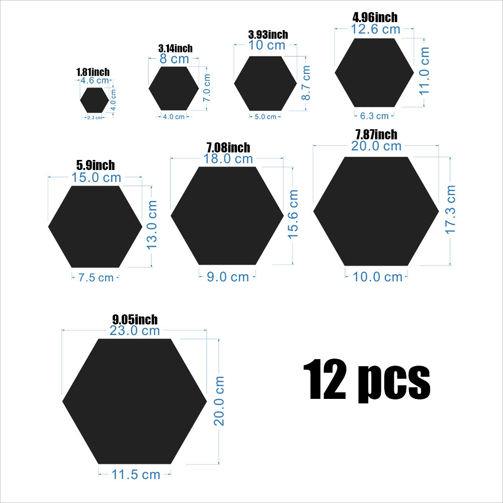 Кастомизированные шестиугольные акриловые зеркальные наклейки на стену из 12 штук для декора гостиной, многоразовые самоклеящиеся наклейки