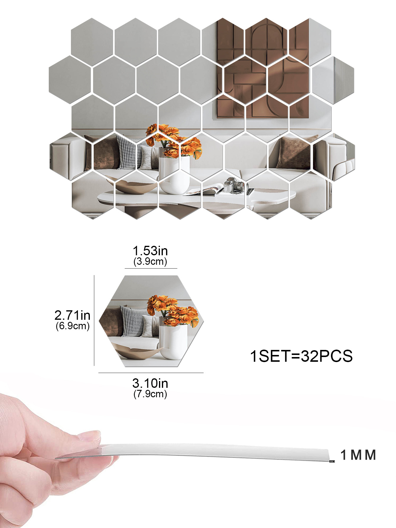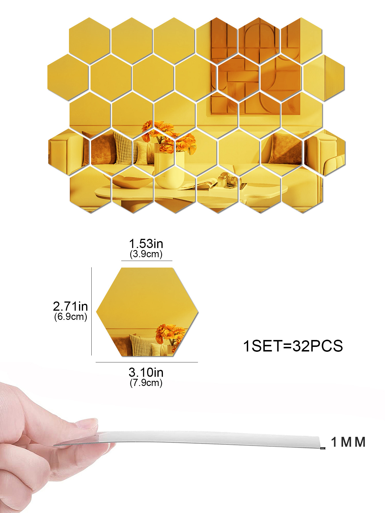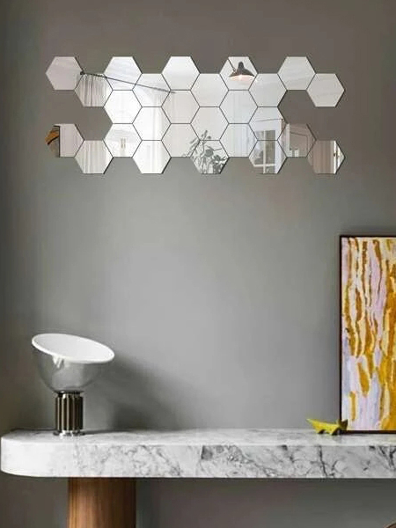 Кастомизированные шестиугольные акриловые зеркальные наклейки на стену из 12 штук для декора гостиной, многоразовые самоклеящиеся наклейки