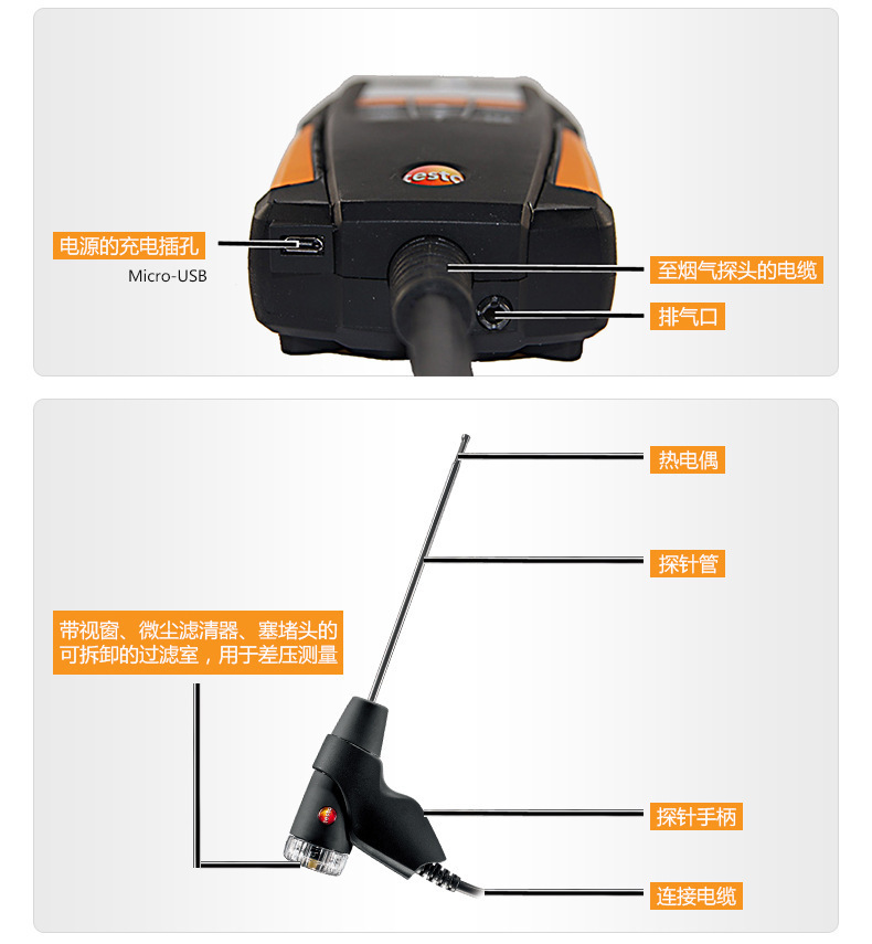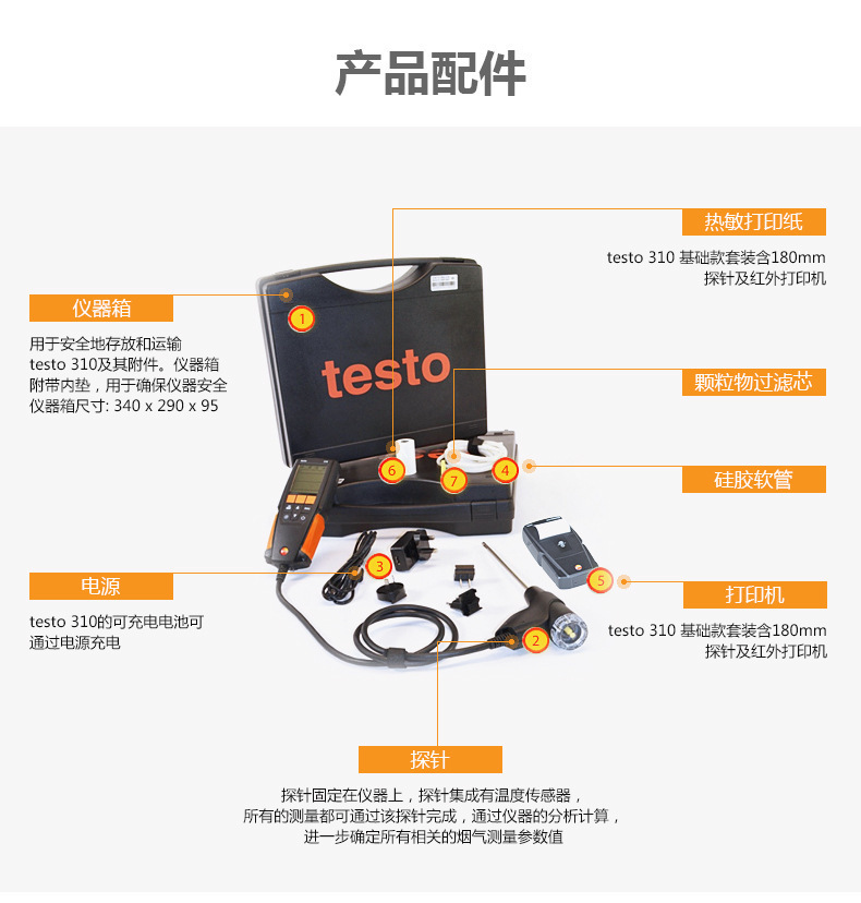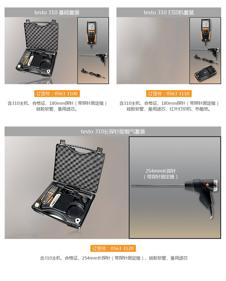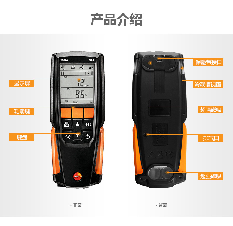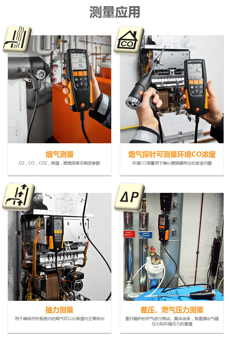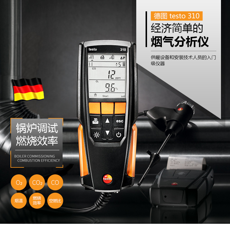 Анализатор дымовых газов Testo310 Промышленный портативный детектор эффективности сгорания газа Co/O2